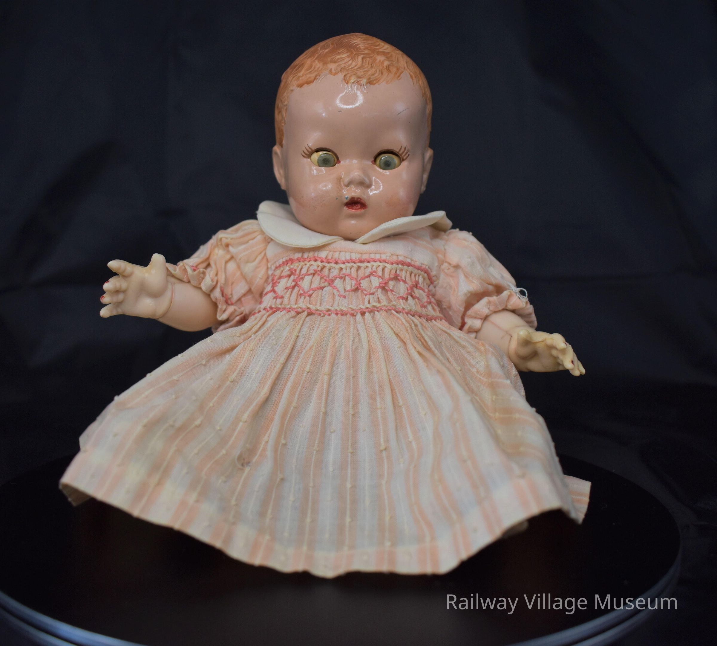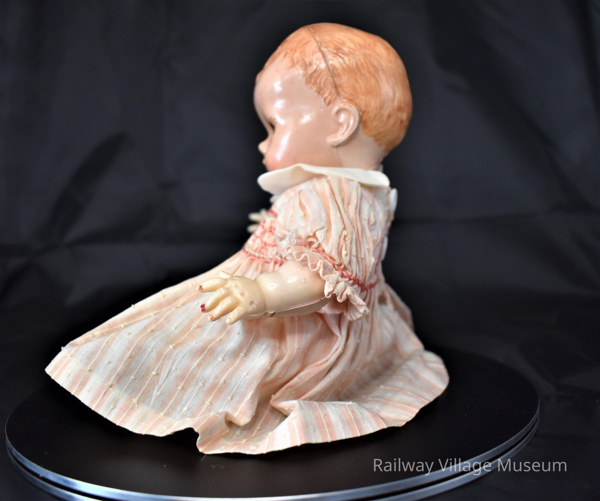 Created by BND London, this doll was made in the mid-1900's, and was bought by the donor's family from Harrods in London. This doll is made from hard plastic, which became popular around the time of World War II, and was great for churning out products. The doll's finger nails were painted by the previous owner, and and is not a part of the original design.Acquisition