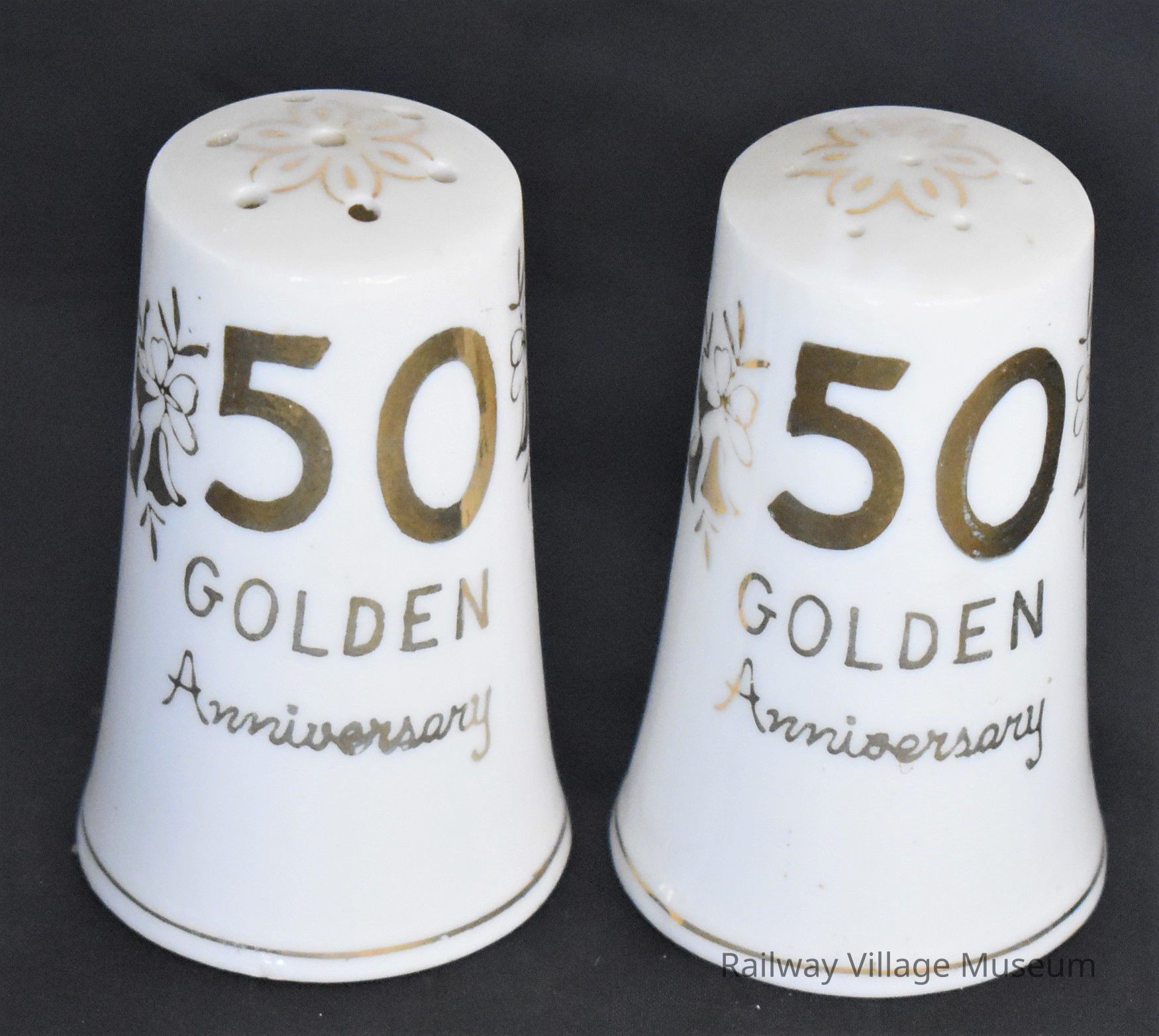 Golden Anniversary salt and pepper shakers: 2023.1.172a, and 2023.172b