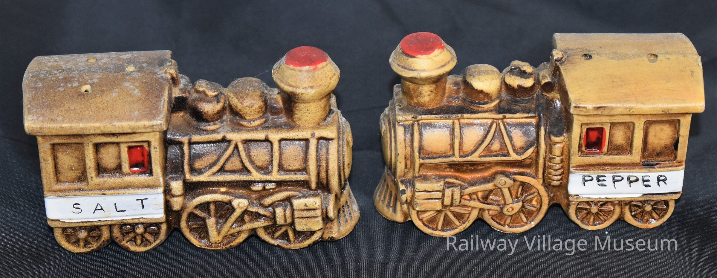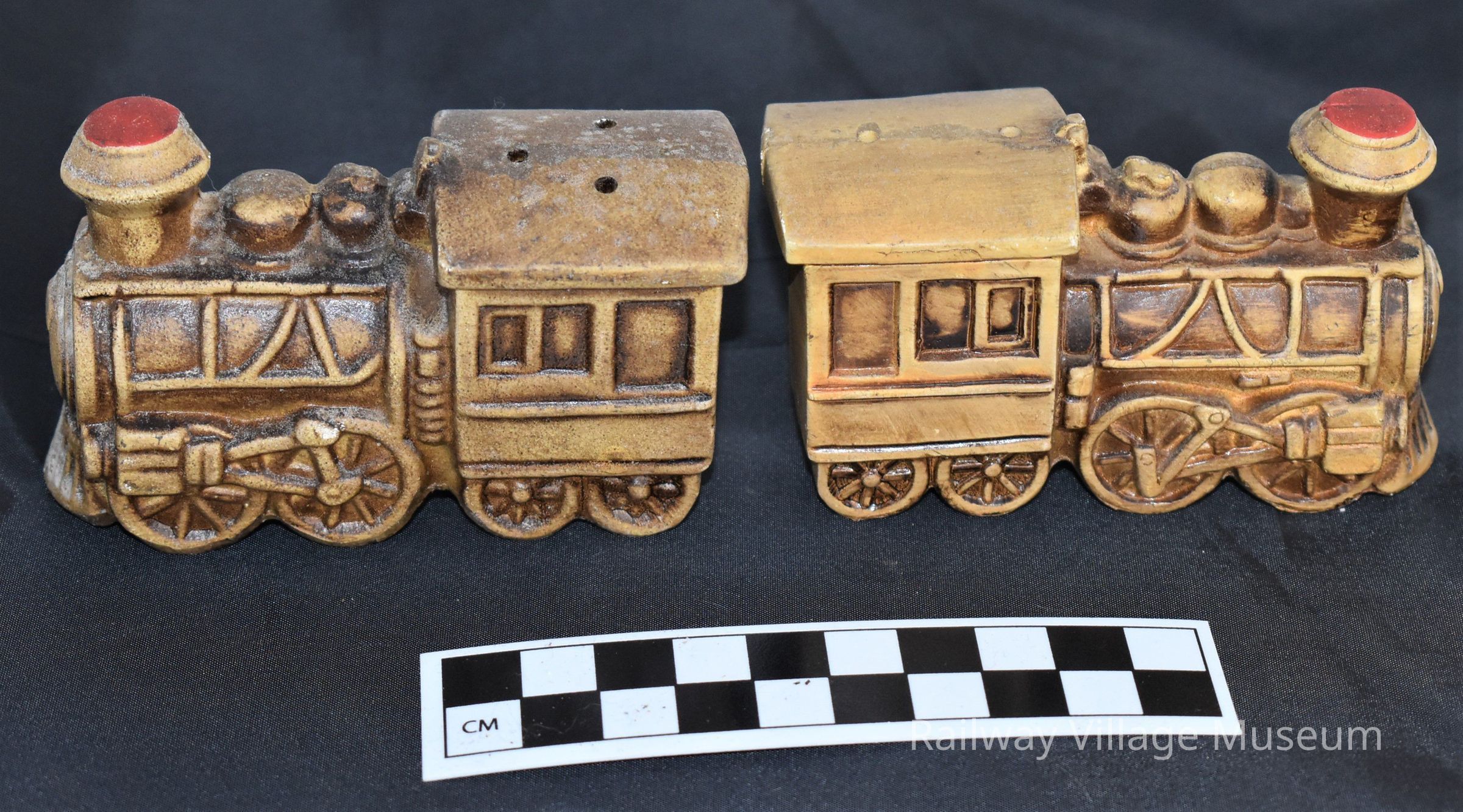 Trains salt and pepper shakers: 2023.1.113a, and 2023.1.113b