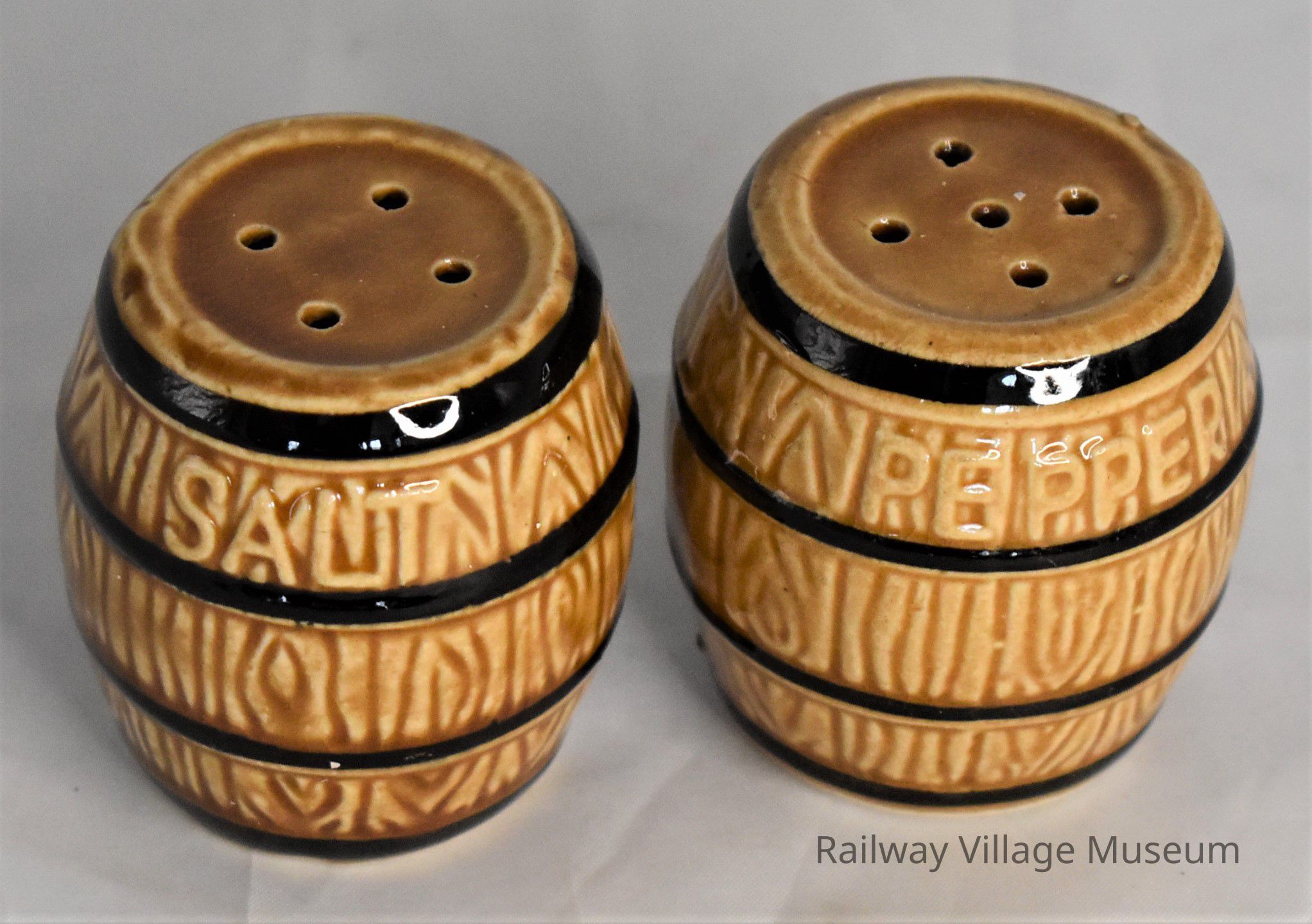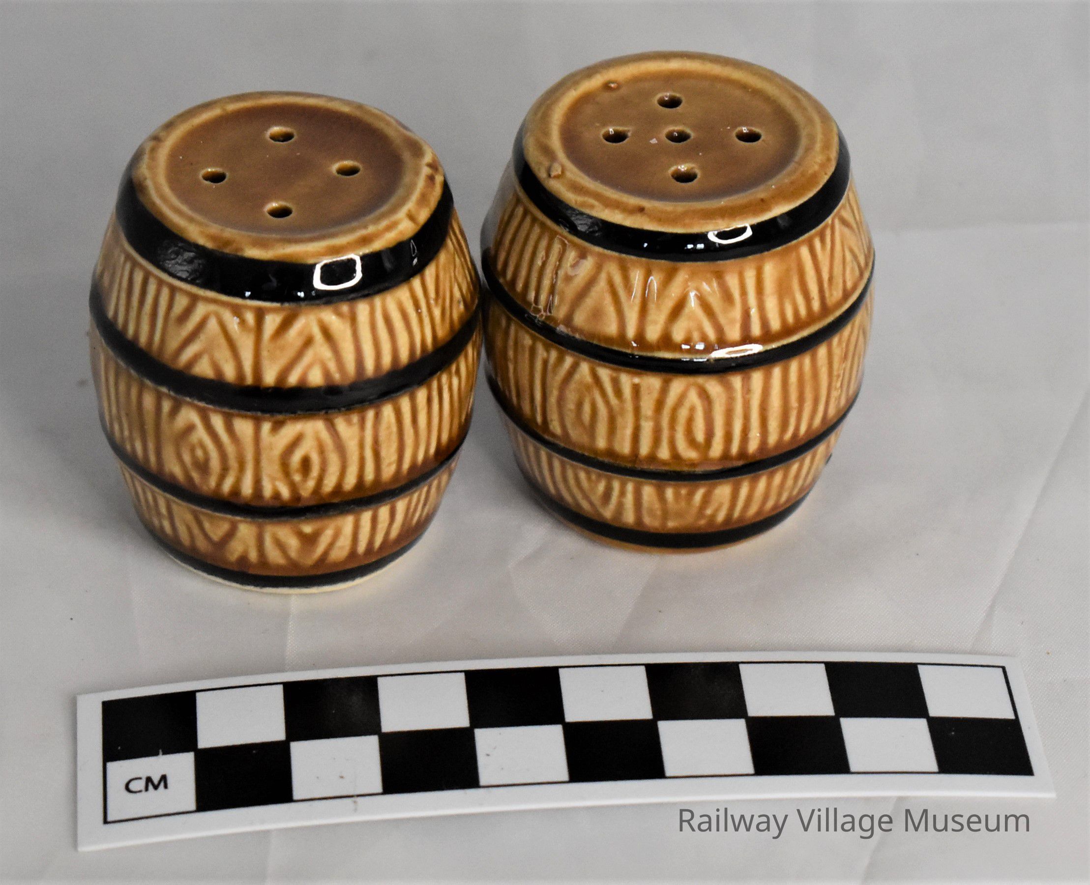Whiskey barrel salt and pepper shakers: 2023.1.63a, and 2023.1.63b