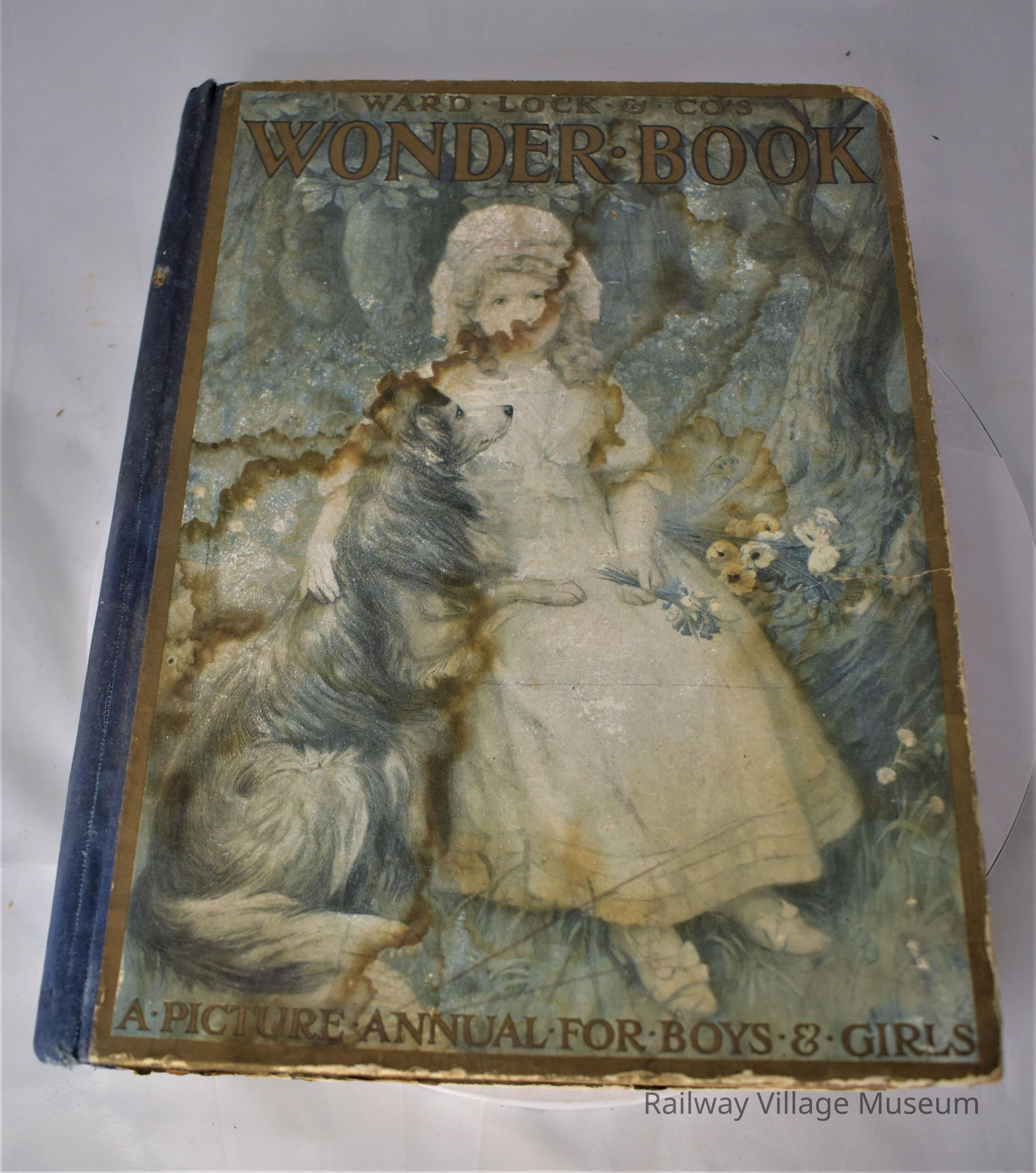 This book has been sun and water damaged, and the edges of the covers are fraying. The pages are discolored and slightly water damaged as well.
