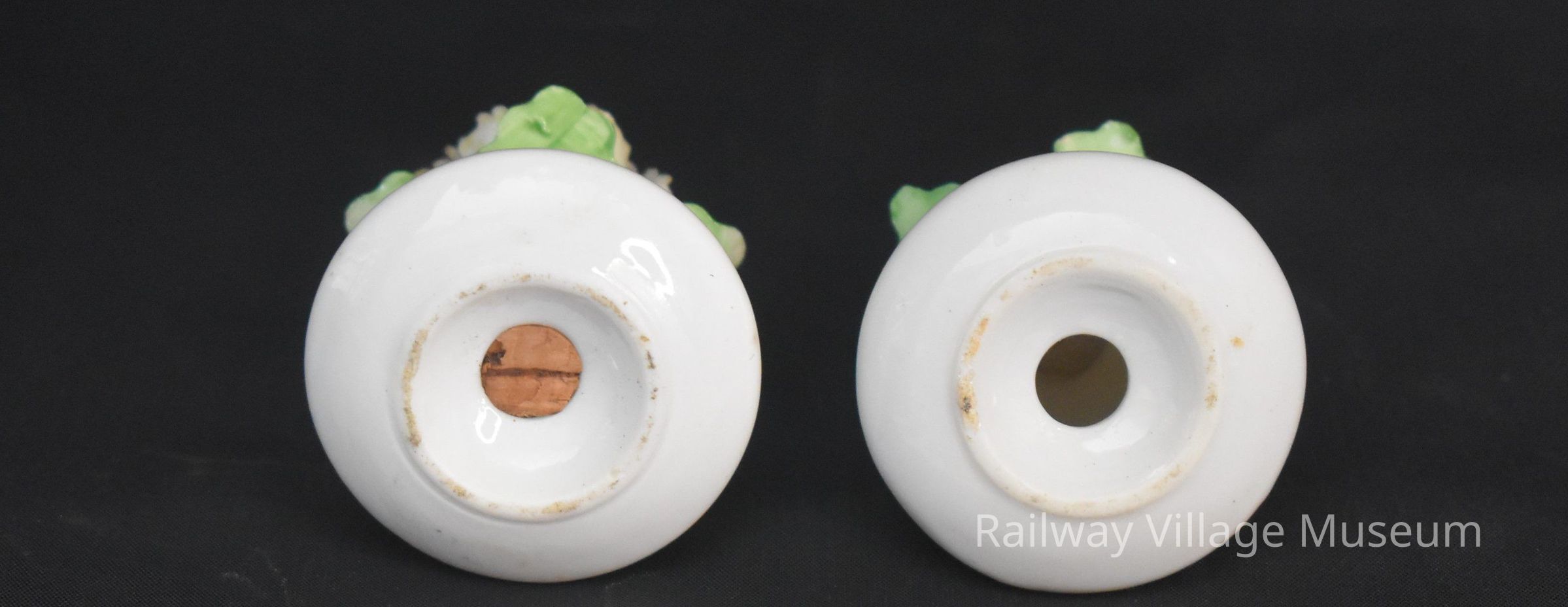 Vintage ceramic flower salt and pepper shakers. There are no manufacturer labels or inscriptions on them.