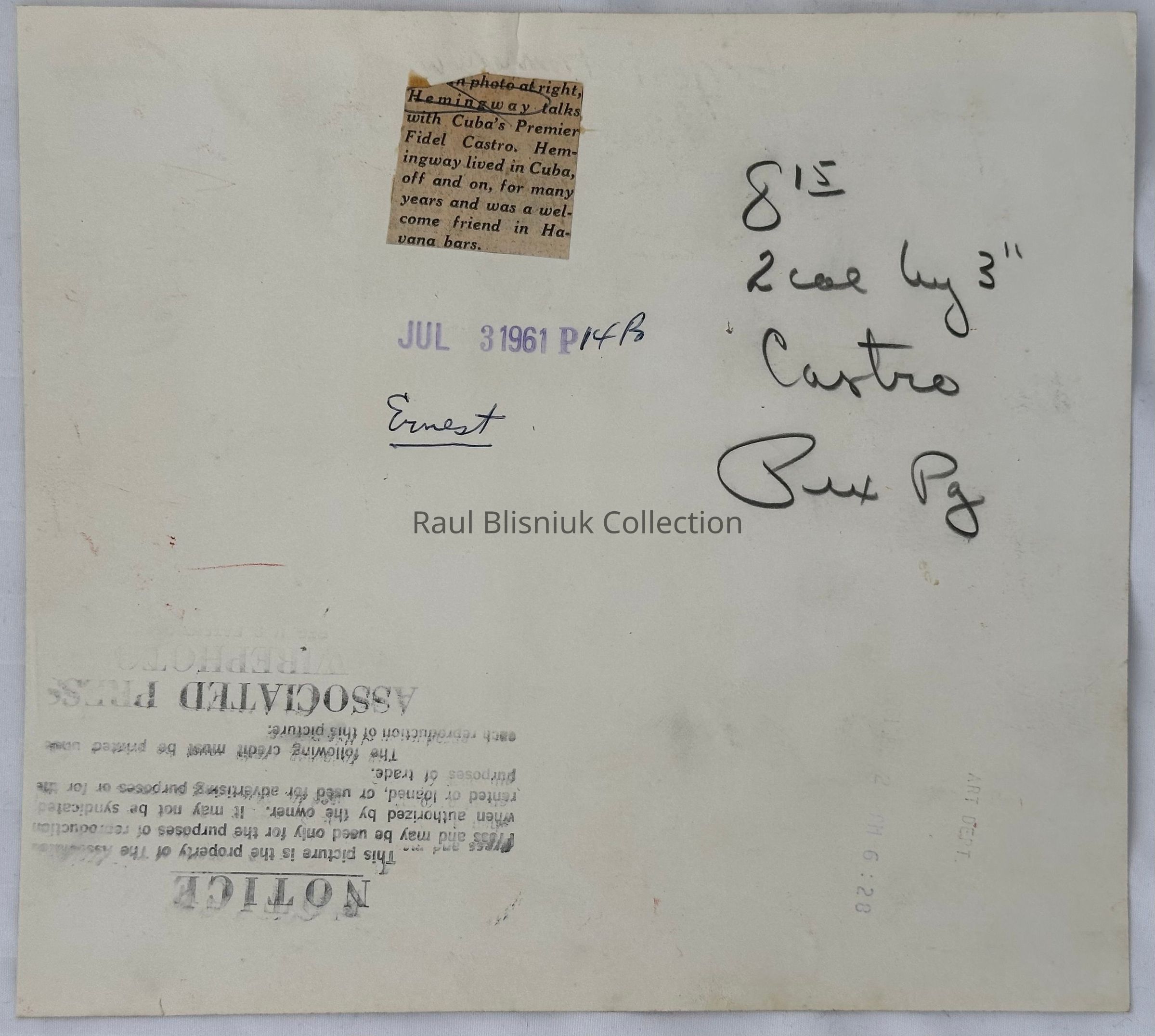 Original 1960 AP Press Wire Photo Ernest Hemingway and Fidel Castro