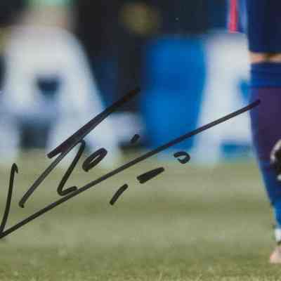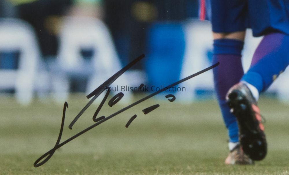 A color photograph print signed by Cristiano Ronaldo and Lionel Messi.