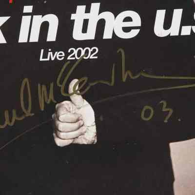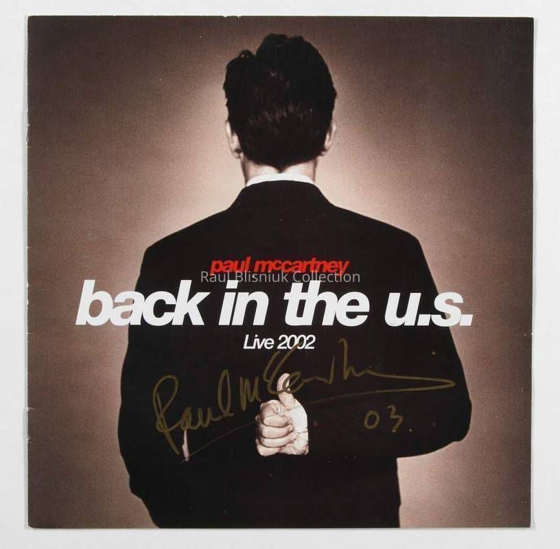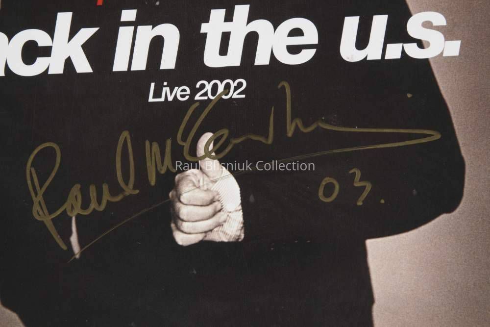An album insert for Paul McCartney's Back in the U.S. Live 2002, signed on the cover in gold felt pen "Paul McCartney 03." 9 by 9 inches