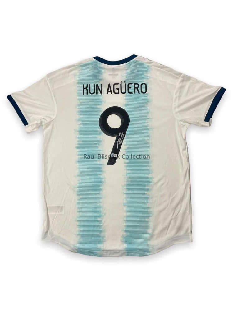 Jersey with everything printed on, size Large. This jersey has been hand-signed by Sergio Aguero.