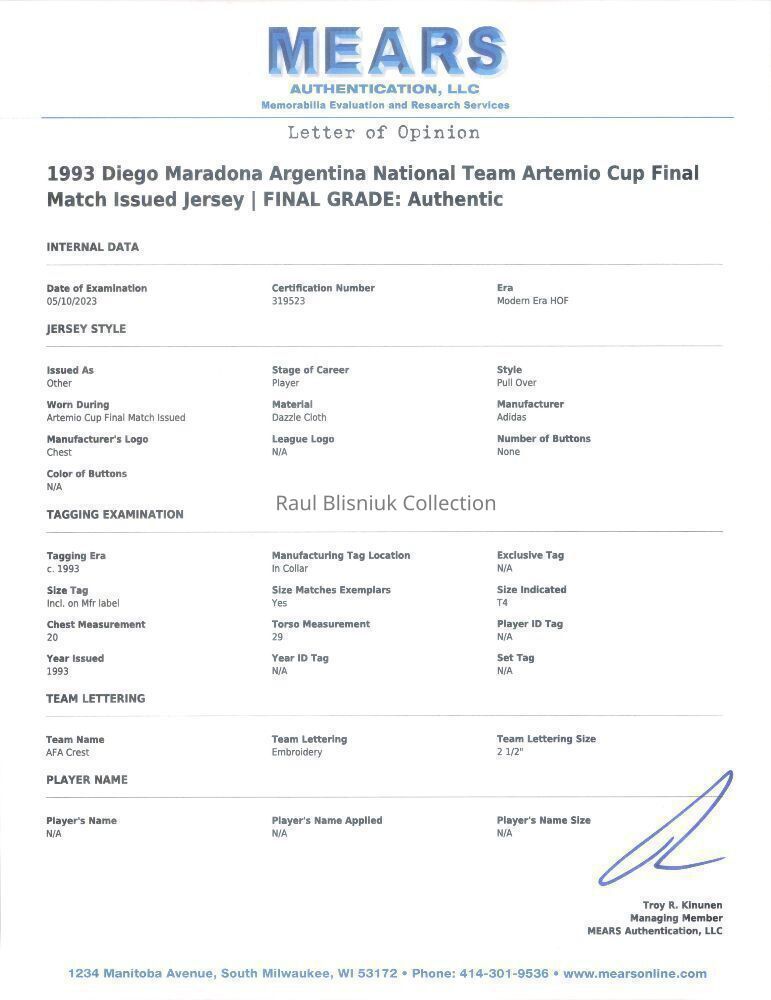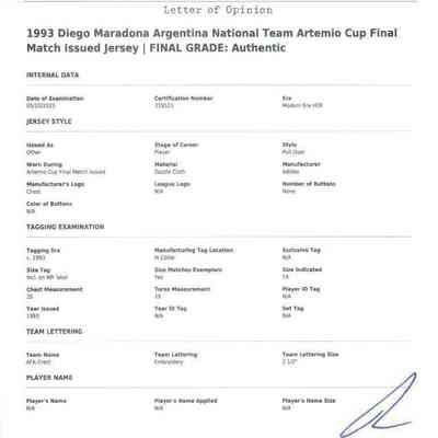 DIEGO MARADONA: MATCH-ISSUED AND SIGNED 1993 ARGENTINA JERSEY (MEARS)Entry/Object ID