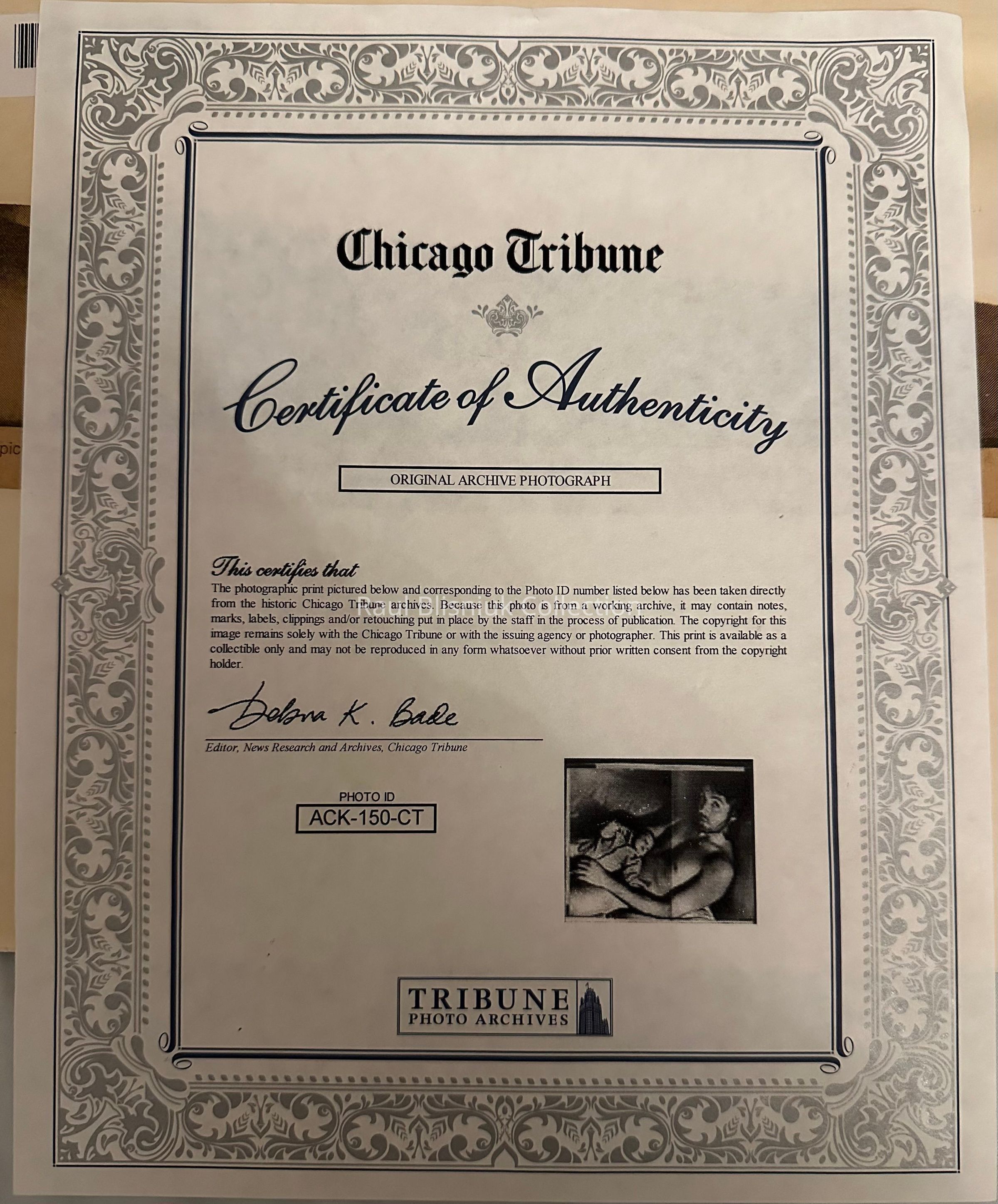 The photographic print pictured below and corresponding to the Photo ID number listed below has been taken directly from the historic Chicago Tribune archives. Because this photo is from a working archive, it may contain notes, marks, labels, clippings and/or retouching put in place by the staff in the process of publication. The copyright for this image remains solely with the Chicago Tribune or with the issuing agency or photographer. This print is available as a collectible only and may not be reproduced in any form whatsoever without prior written consent from the copyright holder.
