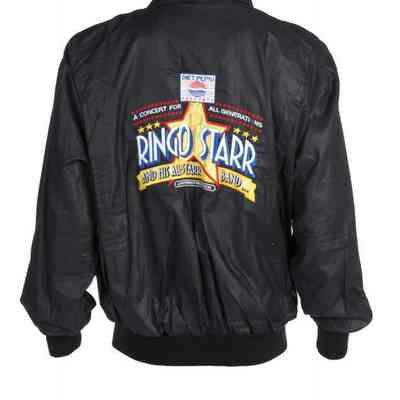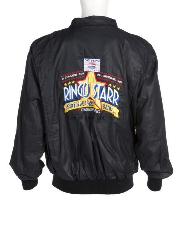 A black cotton blend, zip front jacket with 1989 Ringo Starr and his "All Starr" Band logo embroidered on back, with "Barbara" embroidered at proper right chest.