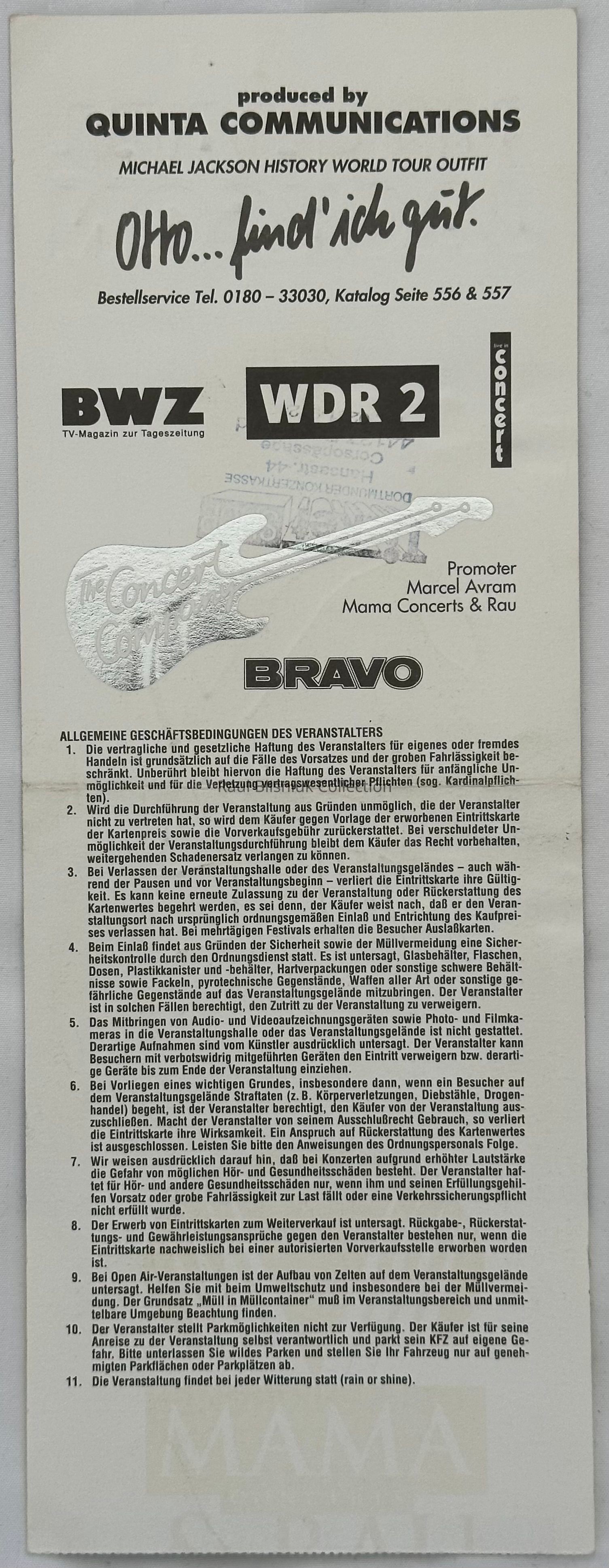 Original used Michael Jackson concert ticket from Germany 1997