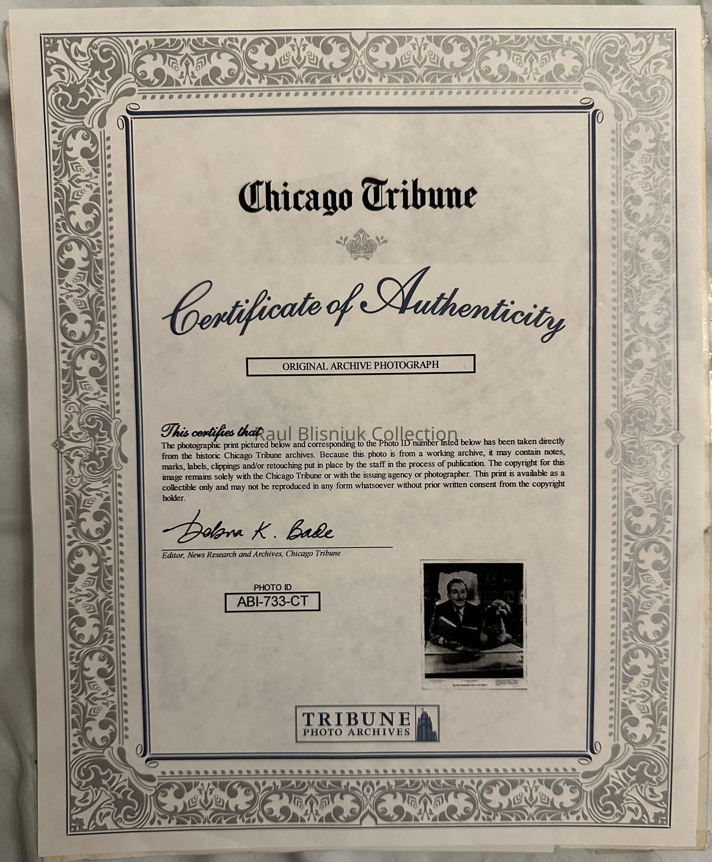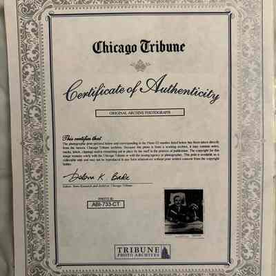 The photographic print pictured below and corresponding to the Photo ID number listed below has been taken directly from the historic Chicago Tribune archives. Because this photo is from a working archive, it may contain notes, marks, labels, clippings and/or retouching put in place by the staff in the process of publication. The copyright for this image remains solely with the Chicago Tribune or with the issuing agency or photographer. This print is available as a collectible only and may not be reproduced in any form whatsoever without prior written consent from the copyright holder.