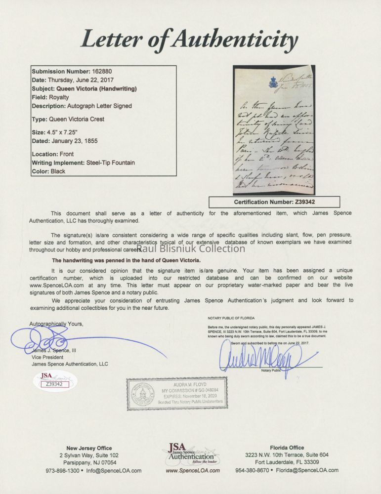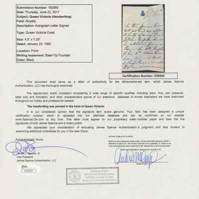 Queen Victoria Signed Hand-Written Letter (JSA LOA)Entry/Object ID
