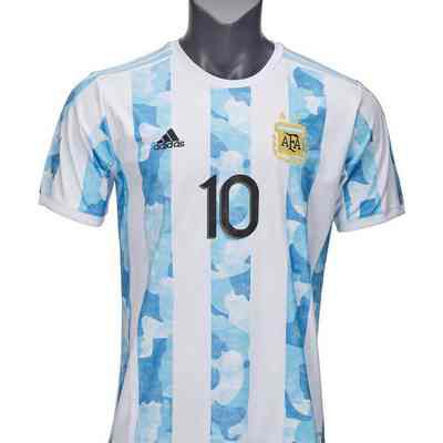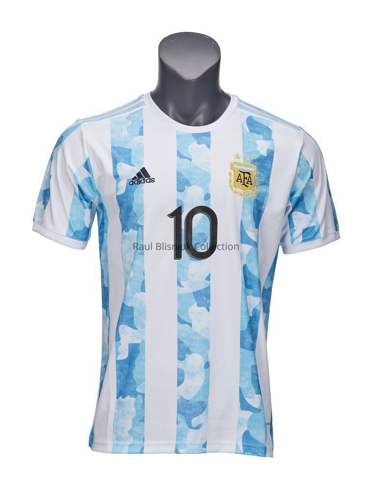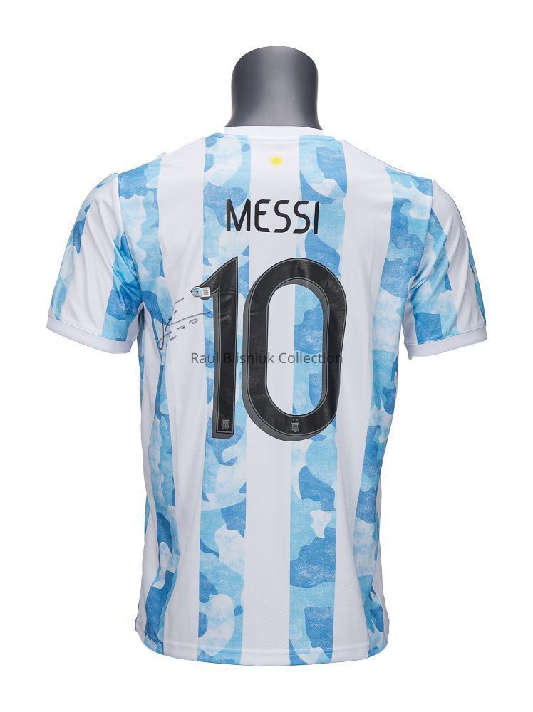 An Adidas brand 2020-21 Argentina jersey signed by Lionel Messi.