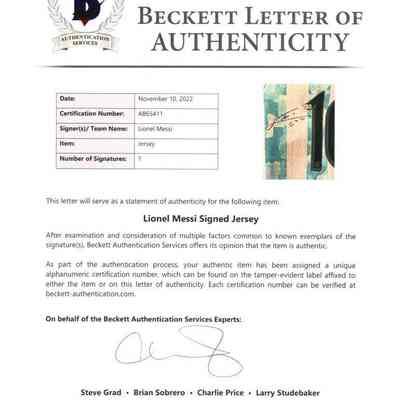 LIONEL MESSI: SIGNED 2020-21 ARGENTINA JERSEY (BECKETT)Entry/Object ID