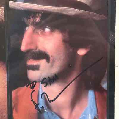 Frank Zappa Custom Framed Signed Photograph Hand-signed in black paint pen + "You are what you is" Vinyl Record