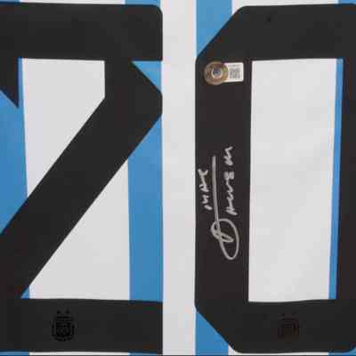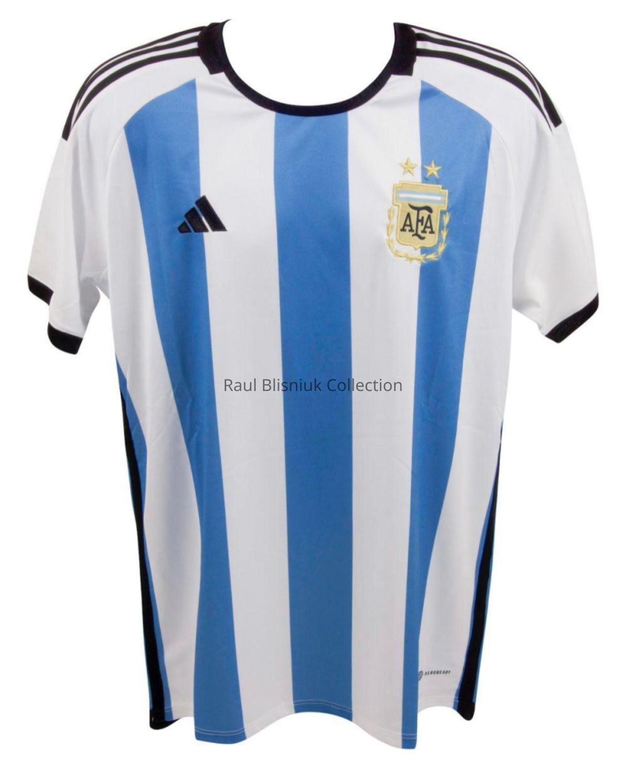 Adidas jersey. Everything is printed on, size L. Has been hand-signed by Alexis Mac Allister.