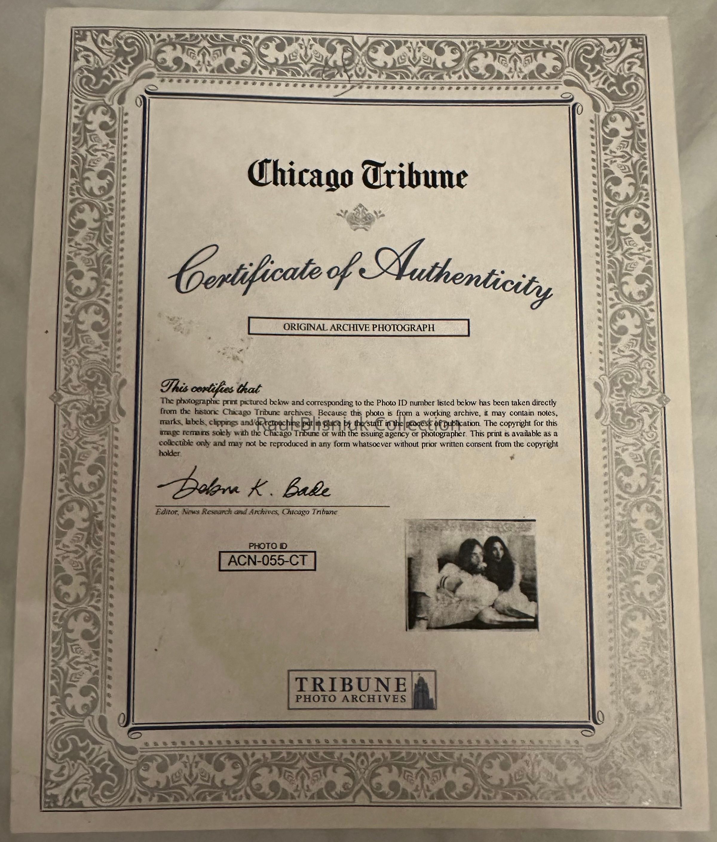 Chicago Tribune press photograph of John Lennon and Yoko Ono