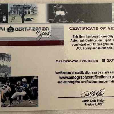 Deceased 2009. Hand-signed in silver paint pen. Reviewed and authenticated by Authograph Certification Experts (ACE).