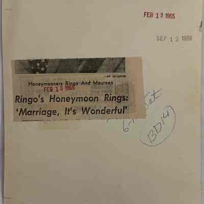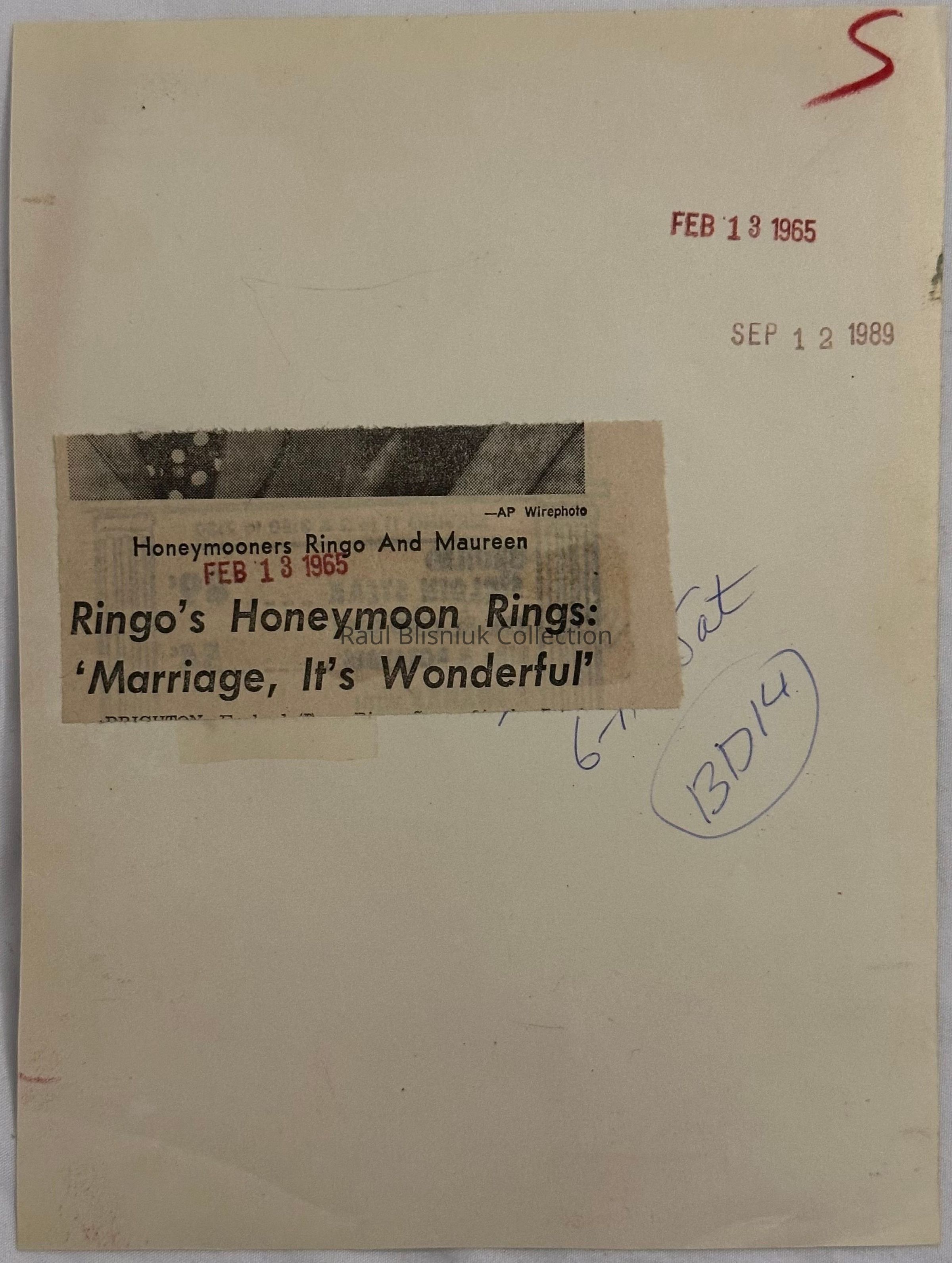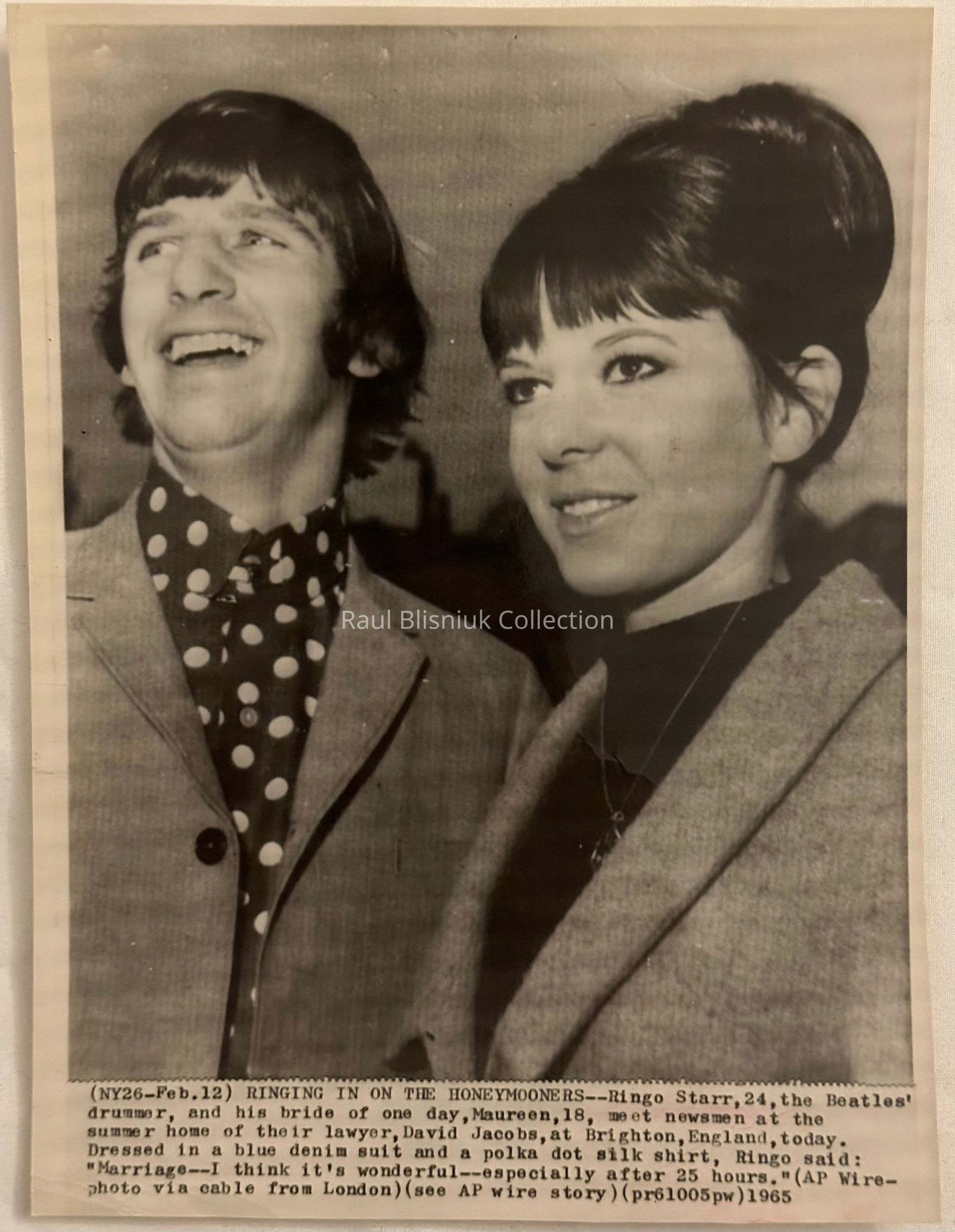 Original 1965 AP Press Photo Ringo Starr and Maureen 6x8 Published: Feb 13 1965 Sep 12 1989