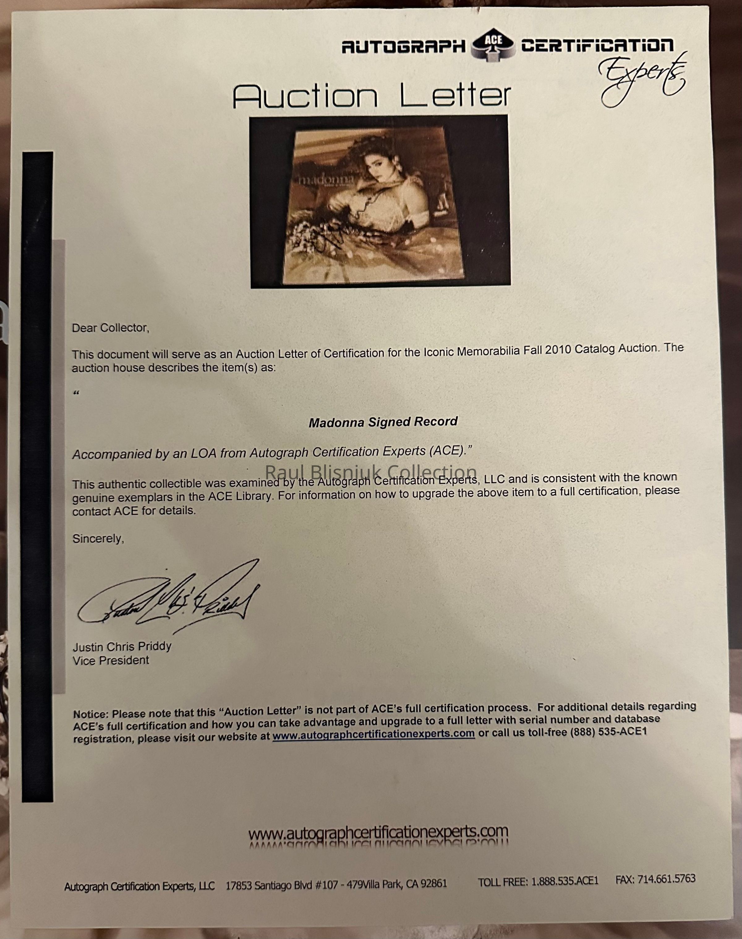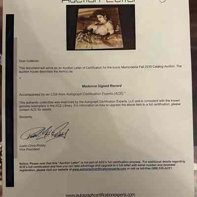 Madonna Signed Record Insert (ACE COA)