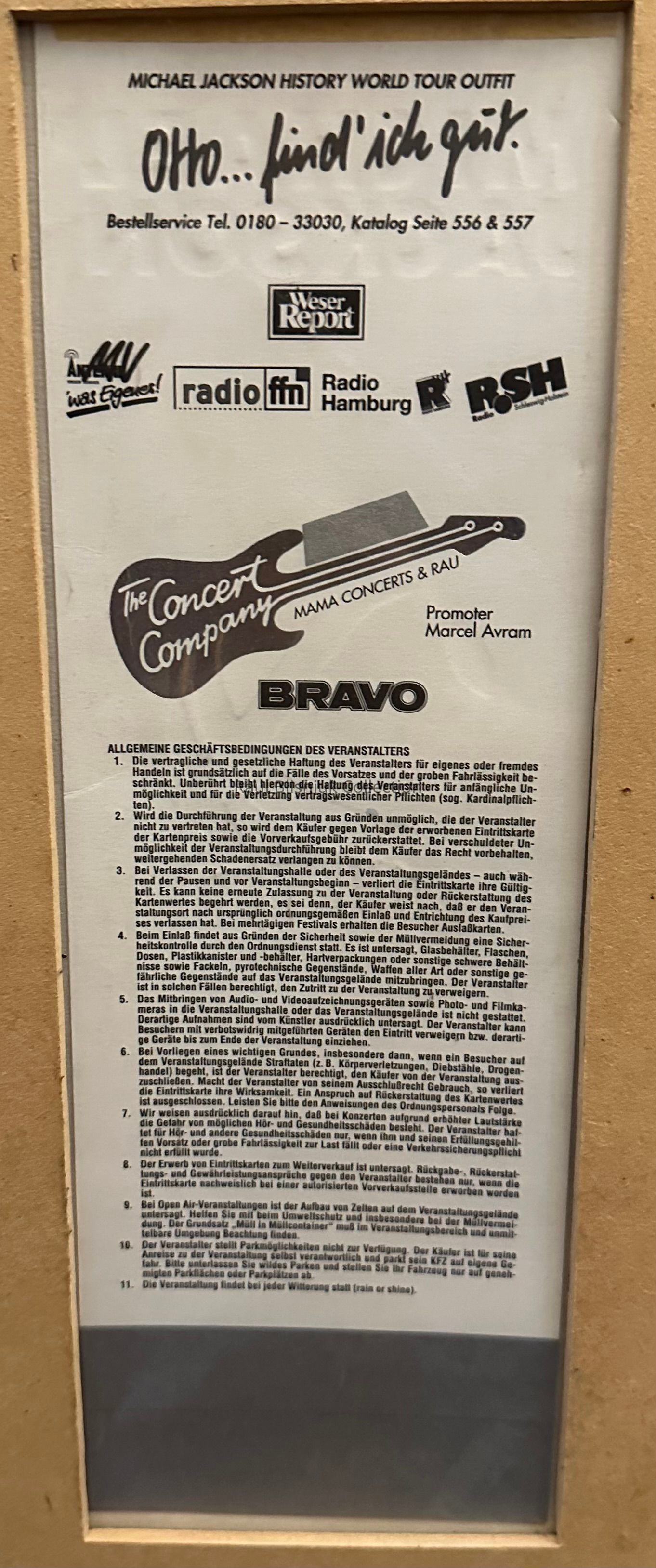 Michael Jackson May 31 1997 Bremen History Tour Concert TicketEntry/Object ID