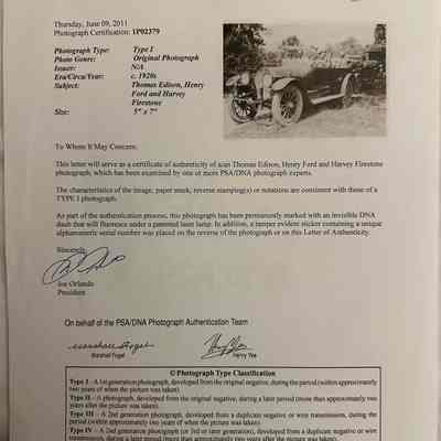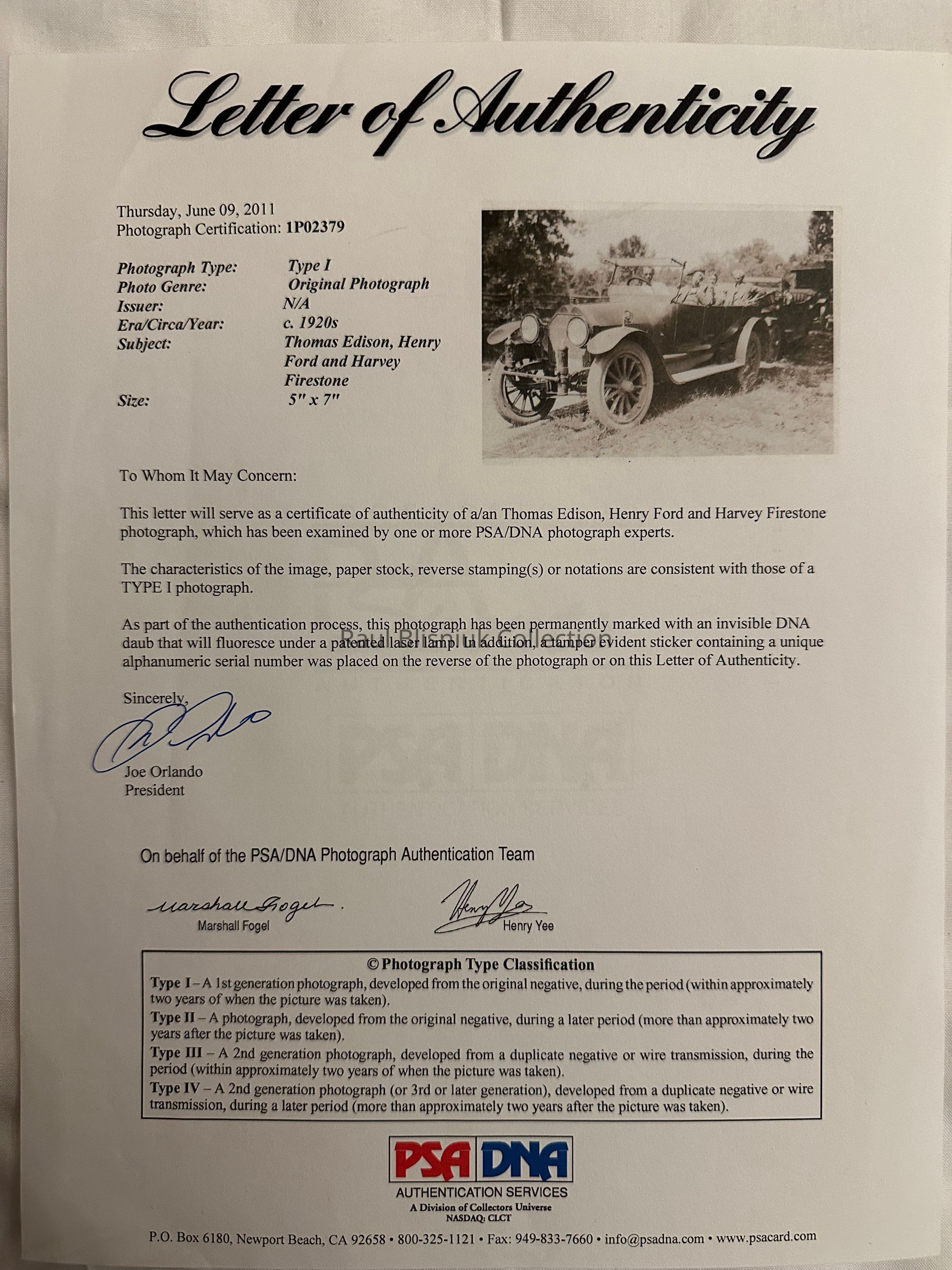Original 5x7 Photo of Thomas Edison, Henry Ford and Harvey Firestone (PSA DNA LOA)Entry/Object ID