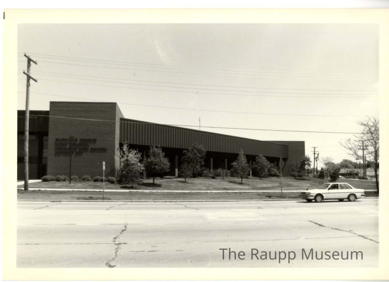 One (1) color photograph of BG high school from the exterior, taken across the street. Shows brick and metal building on an angle, with the name printed on the left front. A white car is parked on the street.Made/Created