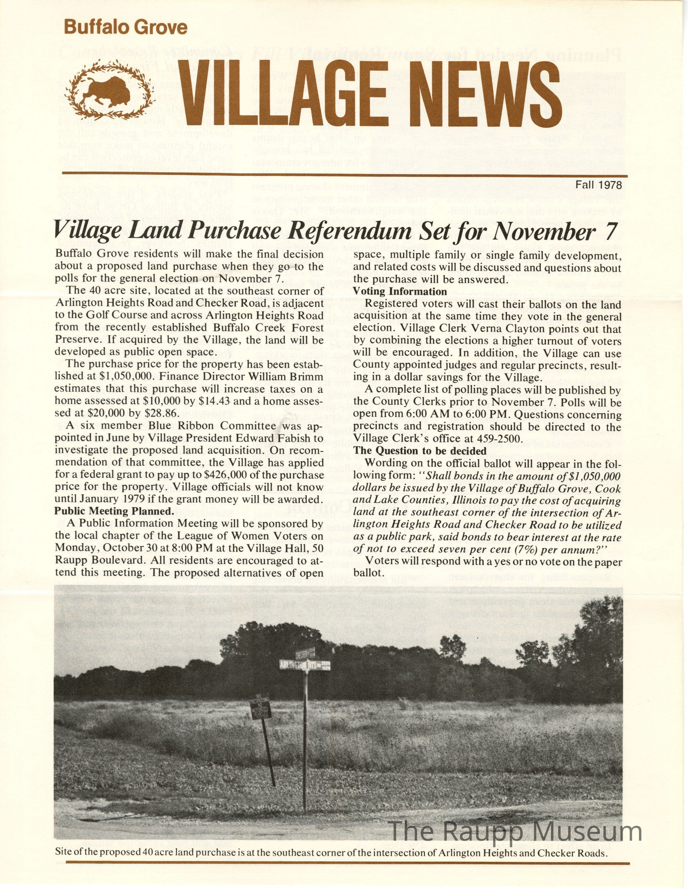 One (1) BG Village News newsletter from Fall 1978. Has brown title and black and white photos and text. 4 pages.