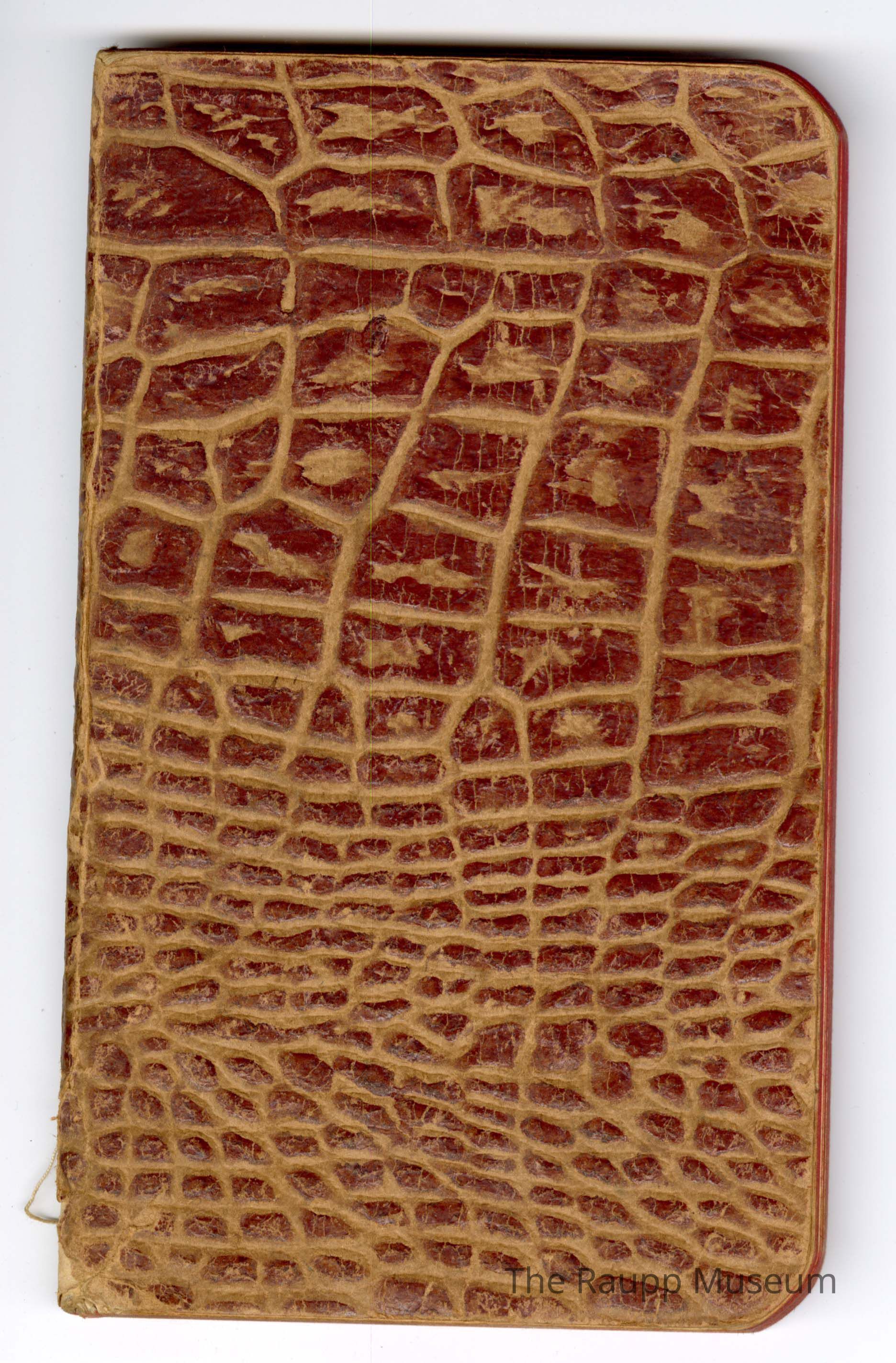 One (1) red leather record book. Book has a red, bumpy raised cover surface and back. Inside are lined pages with handwritten information about members of the Nickol Family, including names, birth years, and relationships, and also record of apple tree planting on April 22, 1895. Only 5 pages have writing on them, the rest are blank.