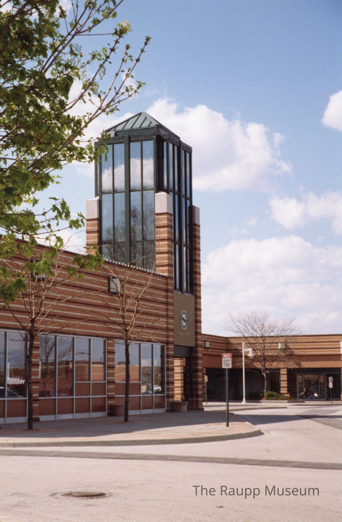 One (1) color photograph of a clock tower made of brick and glass in a shopping mall. Part of the Town Center shopping mall on McHenry and Lake Cook Roads. Currently spot of "Versailles Banquets" at 100 McHenry Road.Made/Created
