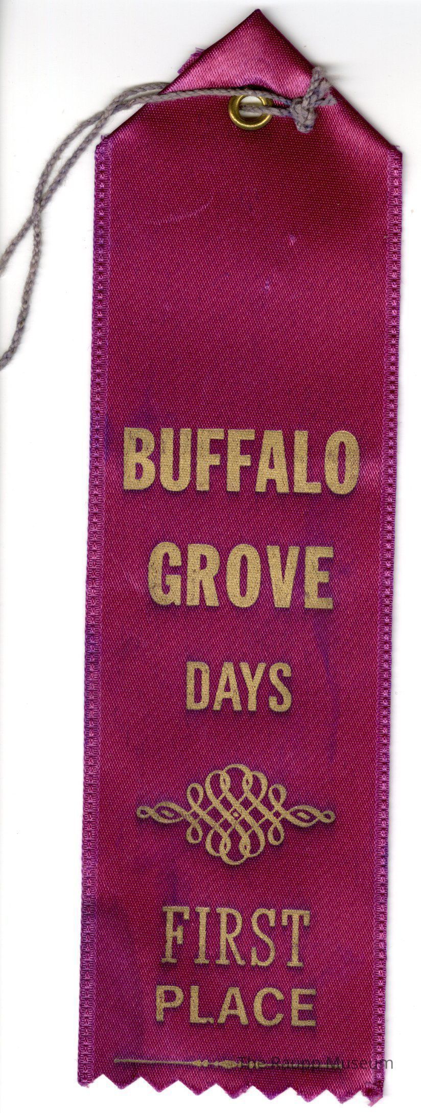 One (1) purple first place prize ribbon for gardening. There is a paper label on the back.