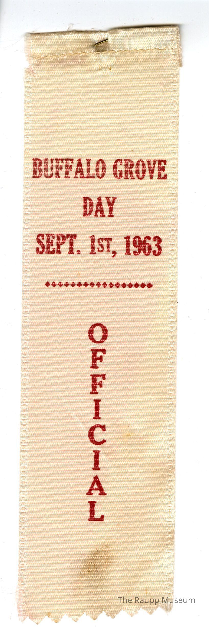 One (1) white official prize ribbon for Buffalo Grove Day.