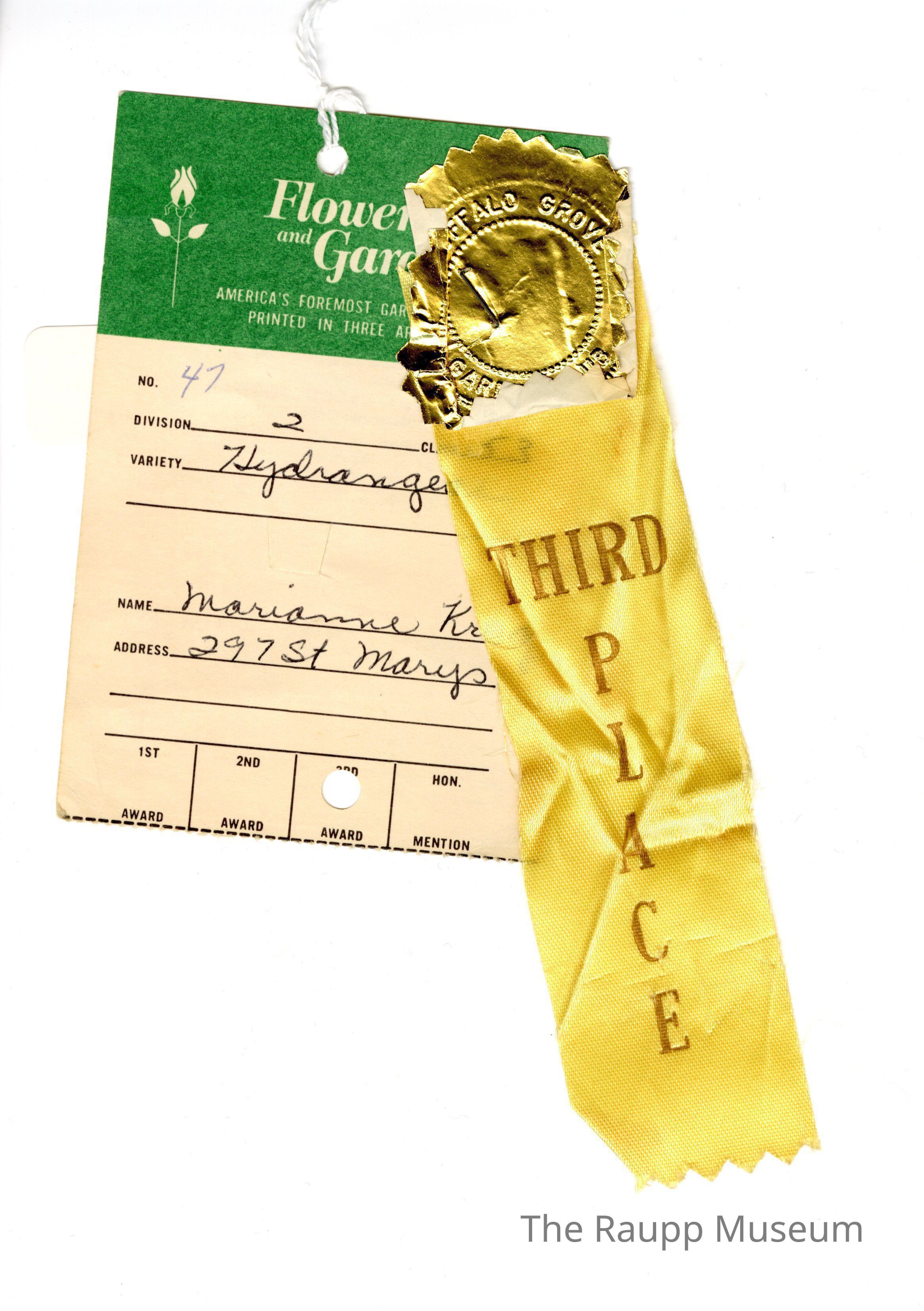 One (1) yellow prize ribbon for Buffalo Grove Day, third place.