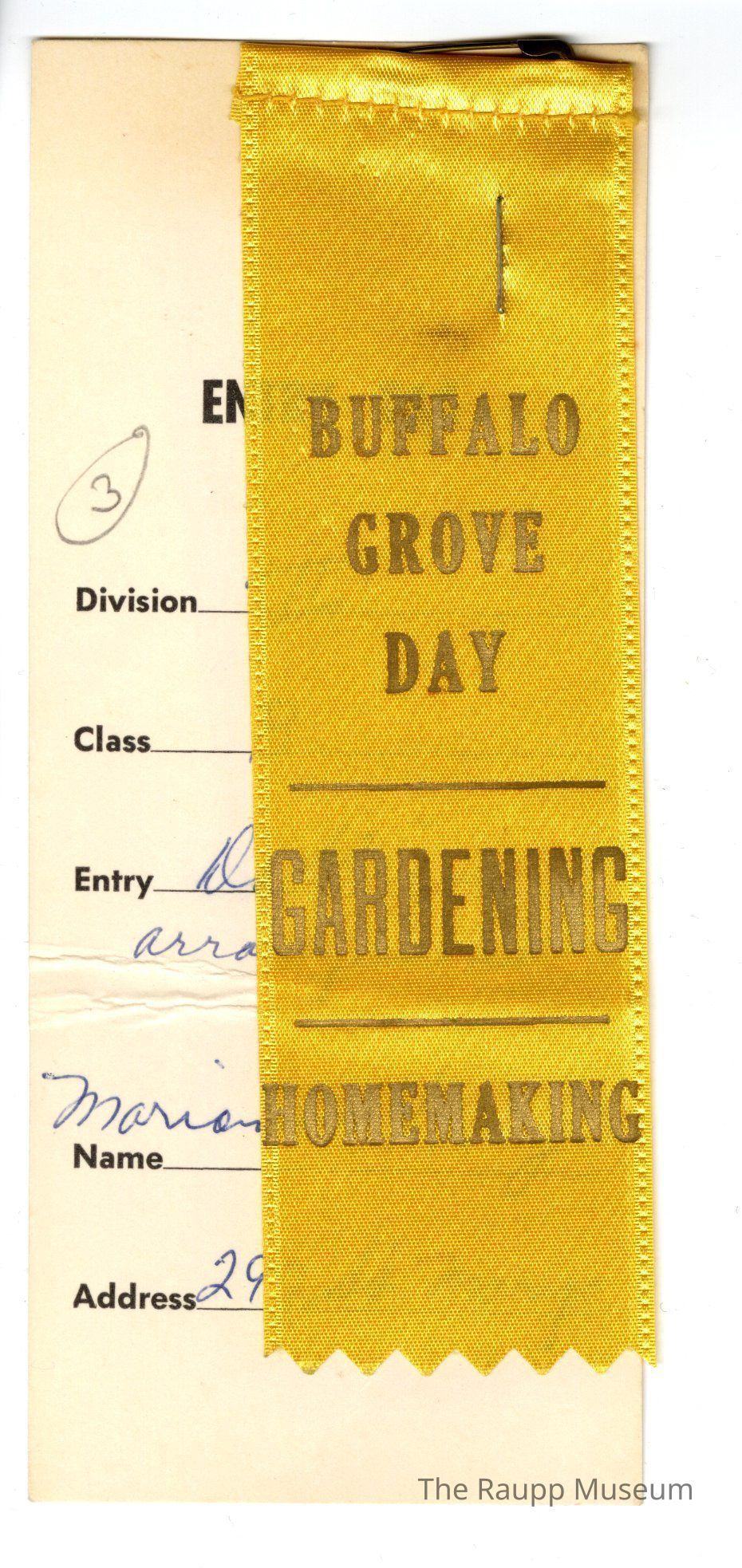 One (1) yellow prize ribbon for Buffalo Grove Day.