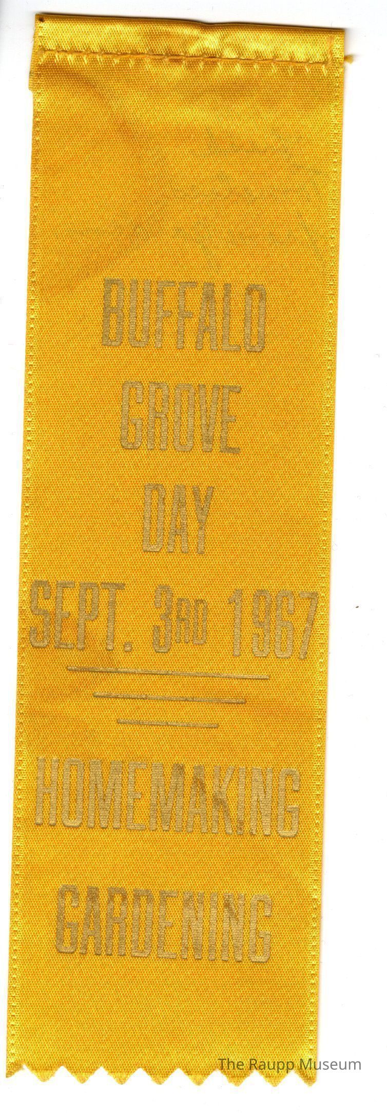 One (1) yellow prize ribbon for Buffalo Grove Day.