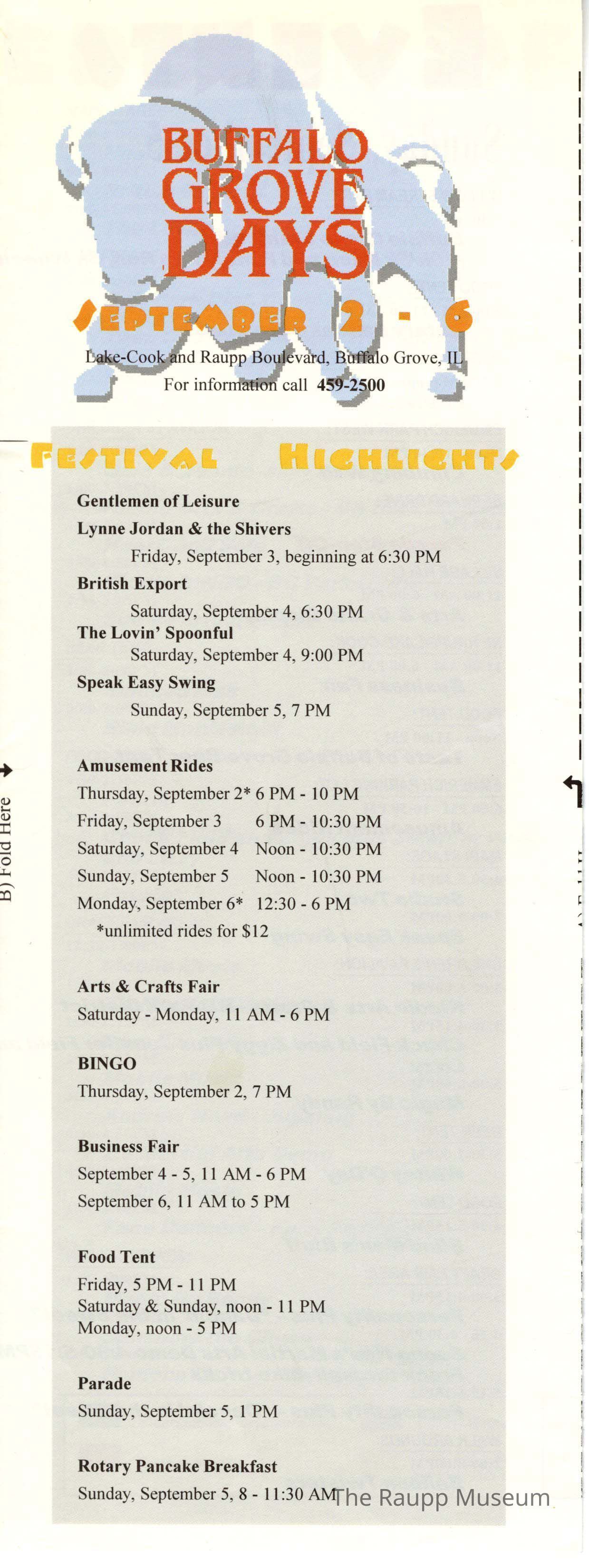 One (1) 4-fold pamphlet for Buffalo Grove Days, date not indicated on pamphlet (possibly 1990s?).