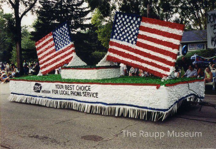 Color print. Image of the Buffalo Grove Days 2002 Parade float.With white base and two stationary American flags on it. Text on side of float: "TDS metrocom Your Best Choice for Local Phone Service." reverse side numbered: <No. 14A> 014 13+00 NNNNN+02AU 1067. Printed on Fujifilm paper.Relationships