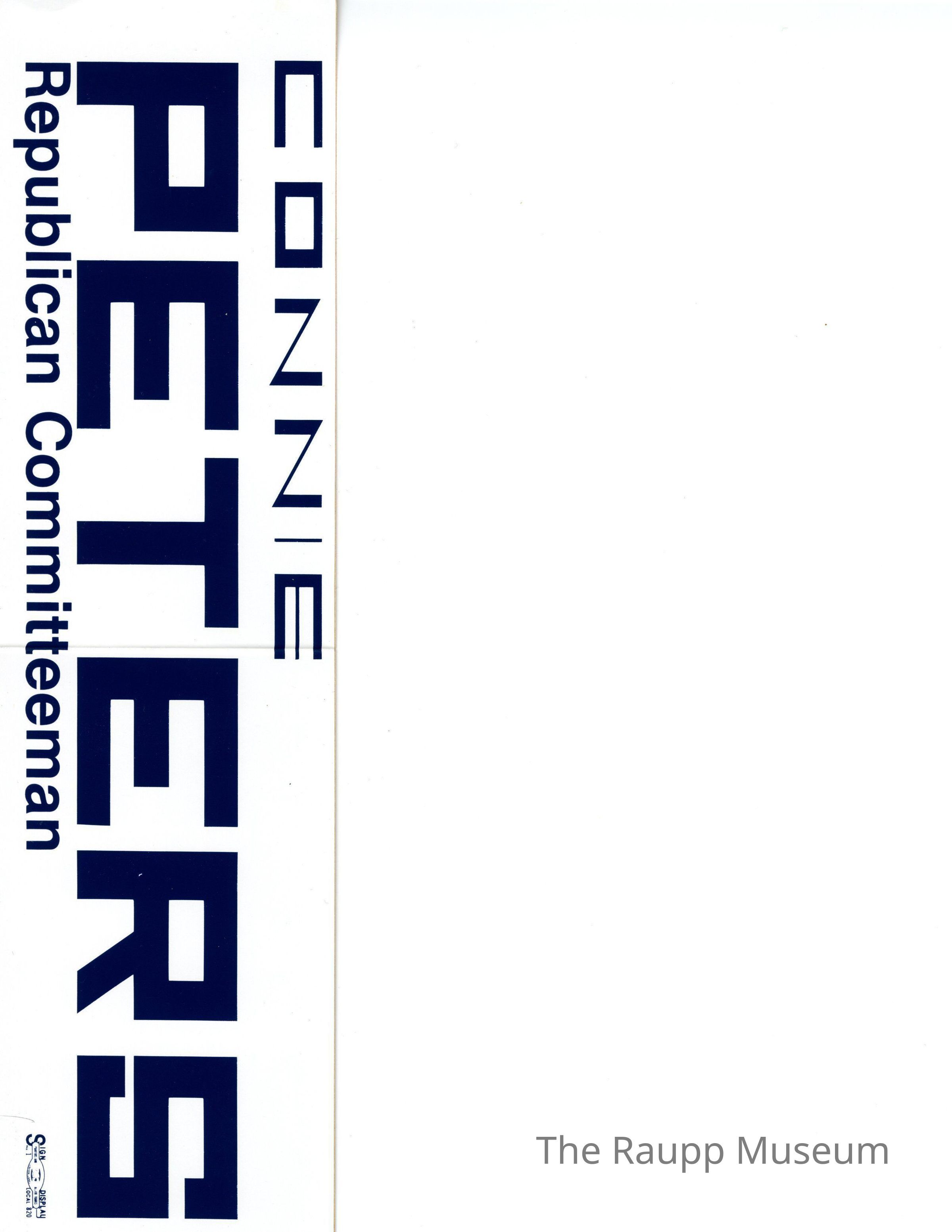 One (1) blue and white election sticker for Connie Peters Republican Committeeman. Blue letters on white background.