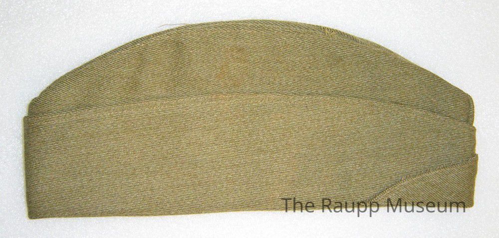 One (1) World War I US Army uniform cap. Cap is olive green, with a brown button near the front.