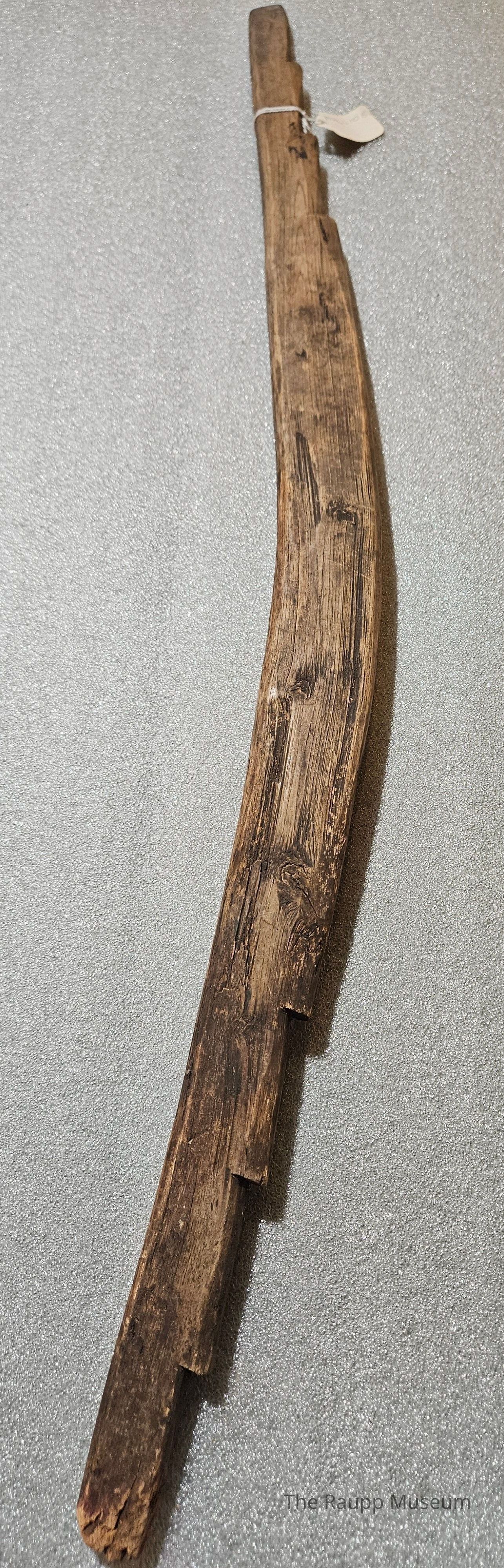 One (1) brown wood gambrel. 3 notches at each end. Slight bend in middle. One end is slightly worn.
