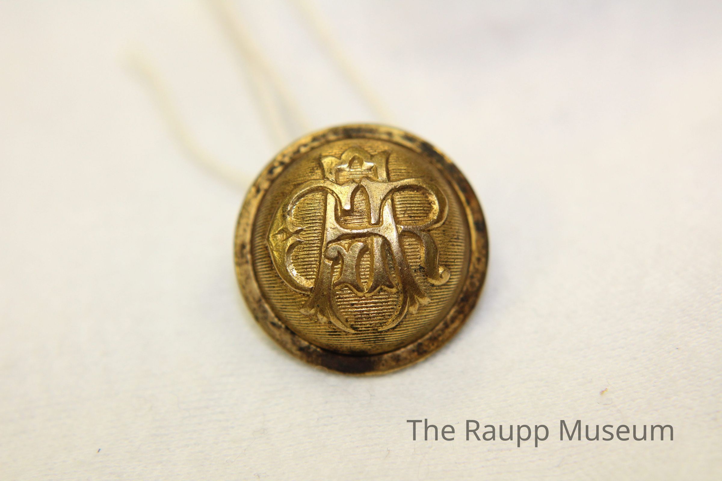 One (1) gold Grand Army of the Republic jacket button. Round button with GAR decoratively embossed in the center. This button was manufactured by Waterbury Button Company.Dimensions