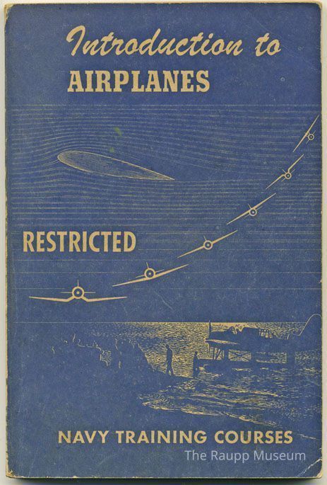 Softcover textbook with blue covers and blue cloth binding. Discolored white illustration of a sea plane on the front. Title page adhesive label: "Horcher Rudolph F. 7287088." Contains exercises and black and white illustrations useful for aircraft education, 232 pages.