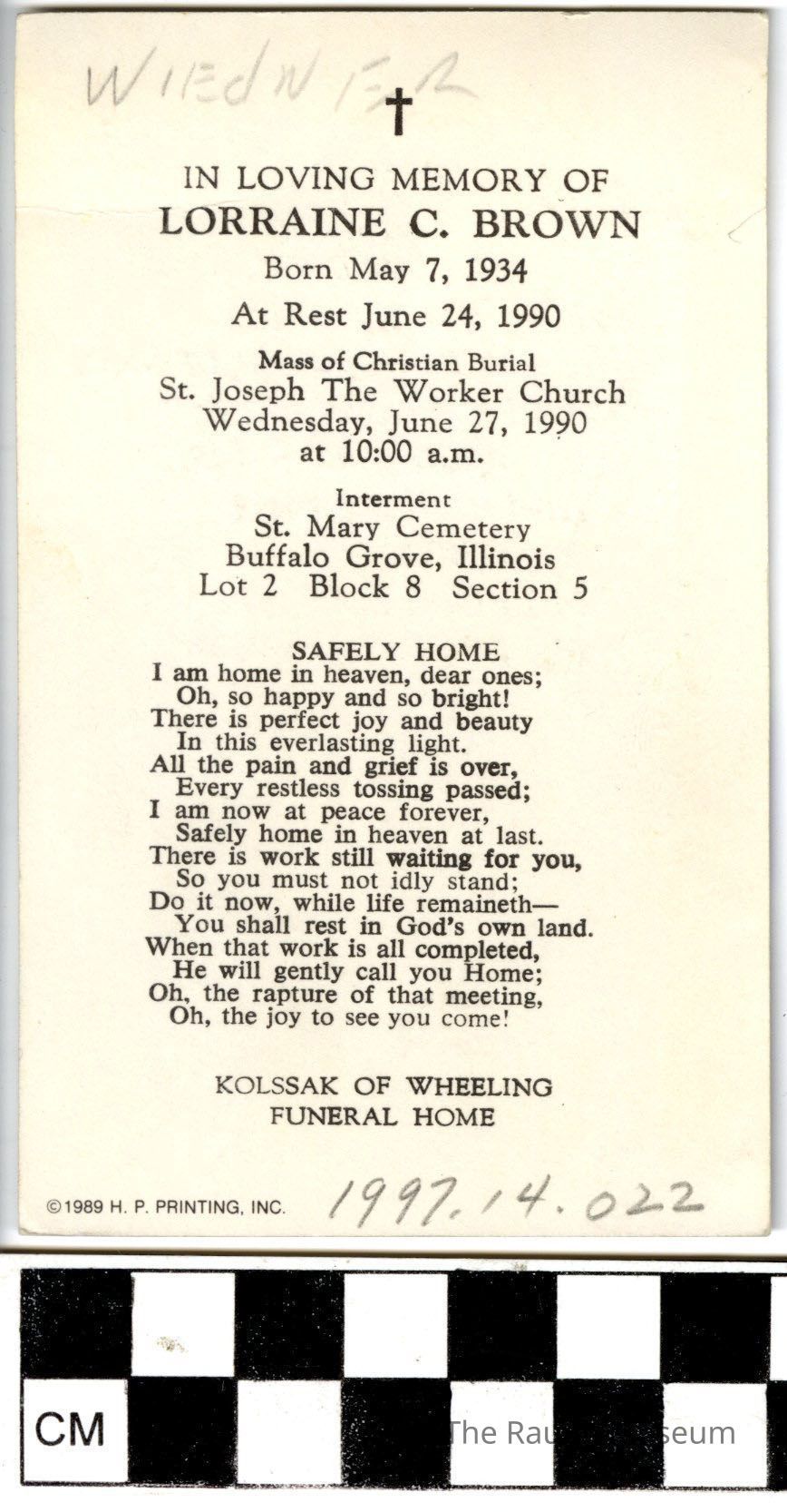 Lorraine C. Brown Funeral Prayer CardEntry/Object ID