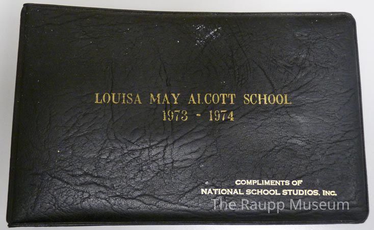 Black textured, padded vinyl covered photograph album covers with gold lettering on cover. Metal ring bound pages. Album contains color portraits of students and staff of Alcott School divided by classroom. Photos printed on glossy photographic paper. Numbered grid on the opposite page to record names corresponding to students in the photos. Only some names are penciled into grids. Classes range from kindergarten to the sixth grades.Archive Details