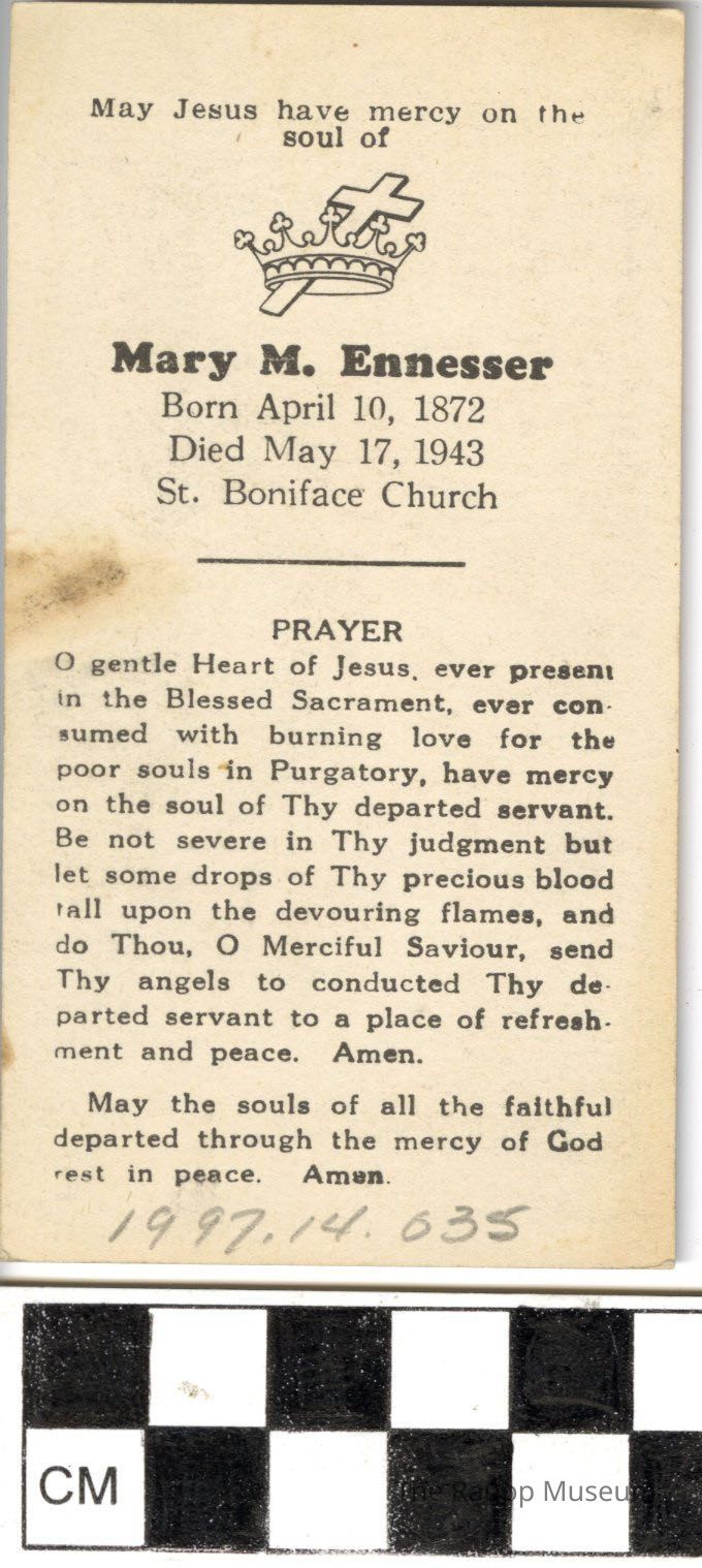 Mary M. Ennesser Funeral CardEntry/Object ID