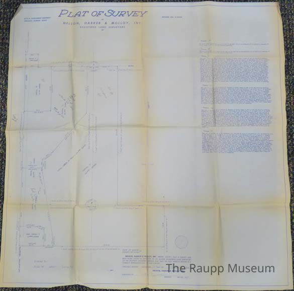 One-sided blue and white plat of survey of a proposed development on the corner of Arlington Heights Road and Dundee Road. Map drawing on the left with parcels of land sectioned off (A/B/C1/C2/D). Typed descriptions of the parcels on the right side.
