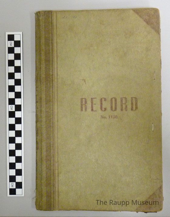 Hardbound ledger with green buckram covers and burgundy corners and one typed laid-in police roster. Front cover stamped with "RECORD No. 1120" marking across center. Front cover has two staples near right side edge. With lined, unnumbered pages. Contains handwritten entries in ink dated between 1/25/1959 and 11/29/1959. Sewn binding. Book served as the Buffalo Grove Police Department's first incident ledger.Archive Details