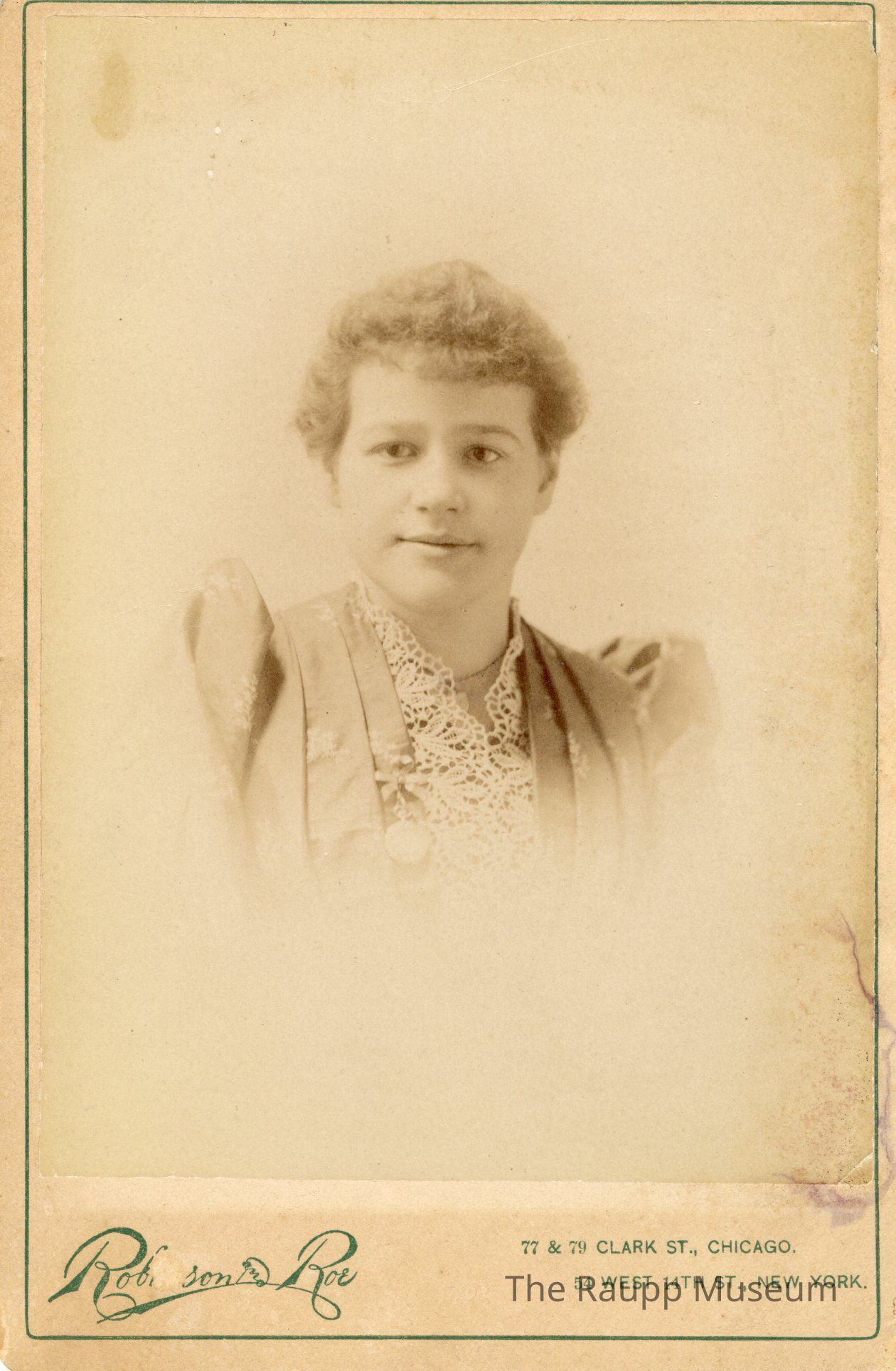 On the bottom is printed in green ink "Robinson (?) and Roe; 77 & 79 Clark St., Chicago; 54 West 14th St., New York".