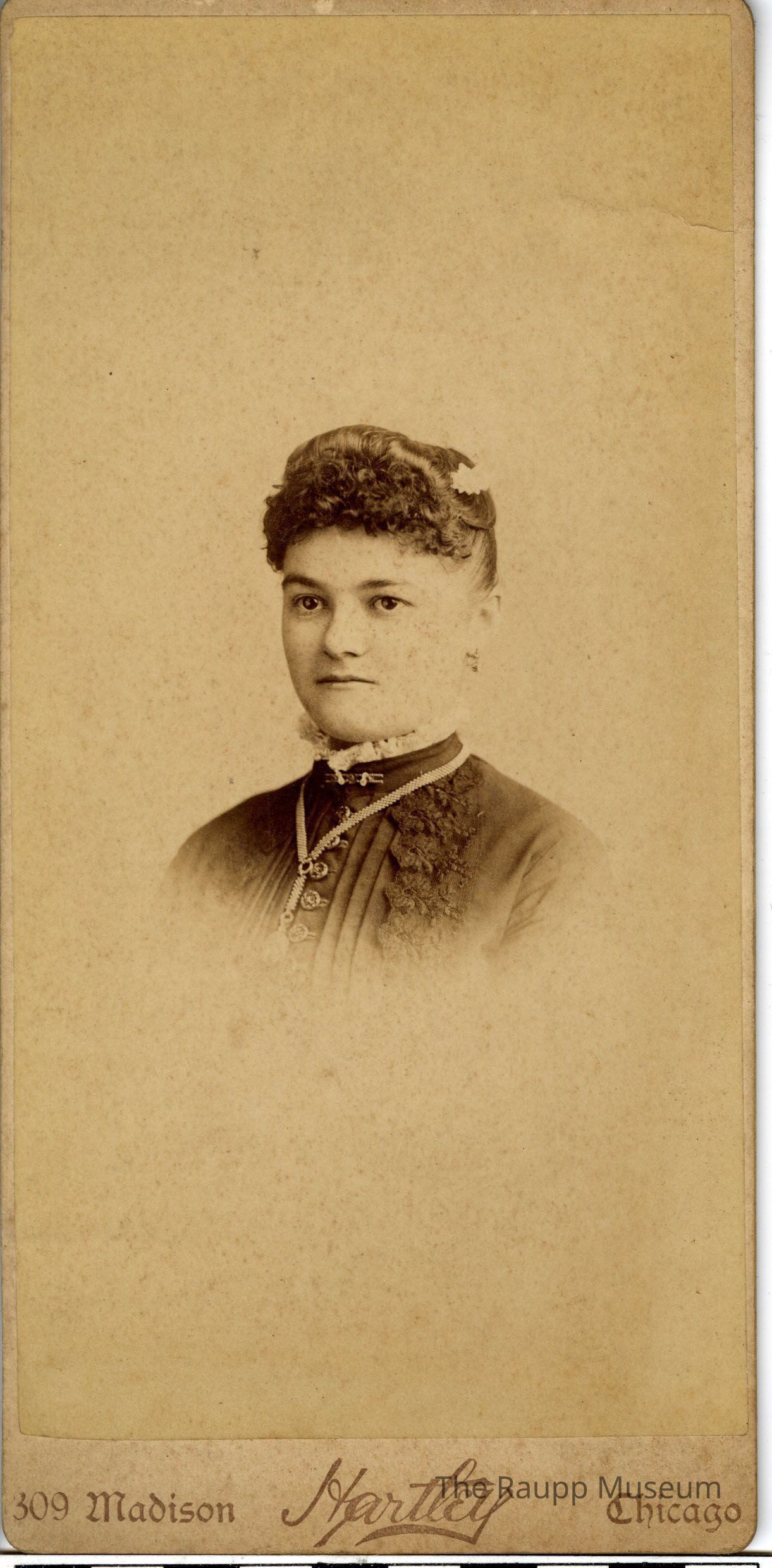 The photo is attached to a beige mat board. On the bottom in brown is printed: "309 Madison, Hartley, Chicago". On the back, another photo imprint was left over of a portrait of another woman.Made/Created