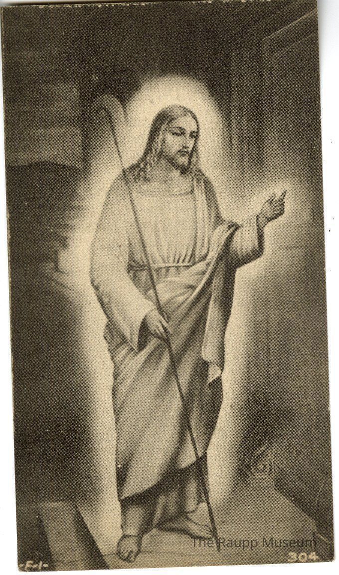 One (1) 2-sided prayer card. One side has an illustration of Jesus with a light shining behind him. The other side has text starting with "Remembrance of the Mission Given by Rev, Titus, O.F.M..."Archive Details